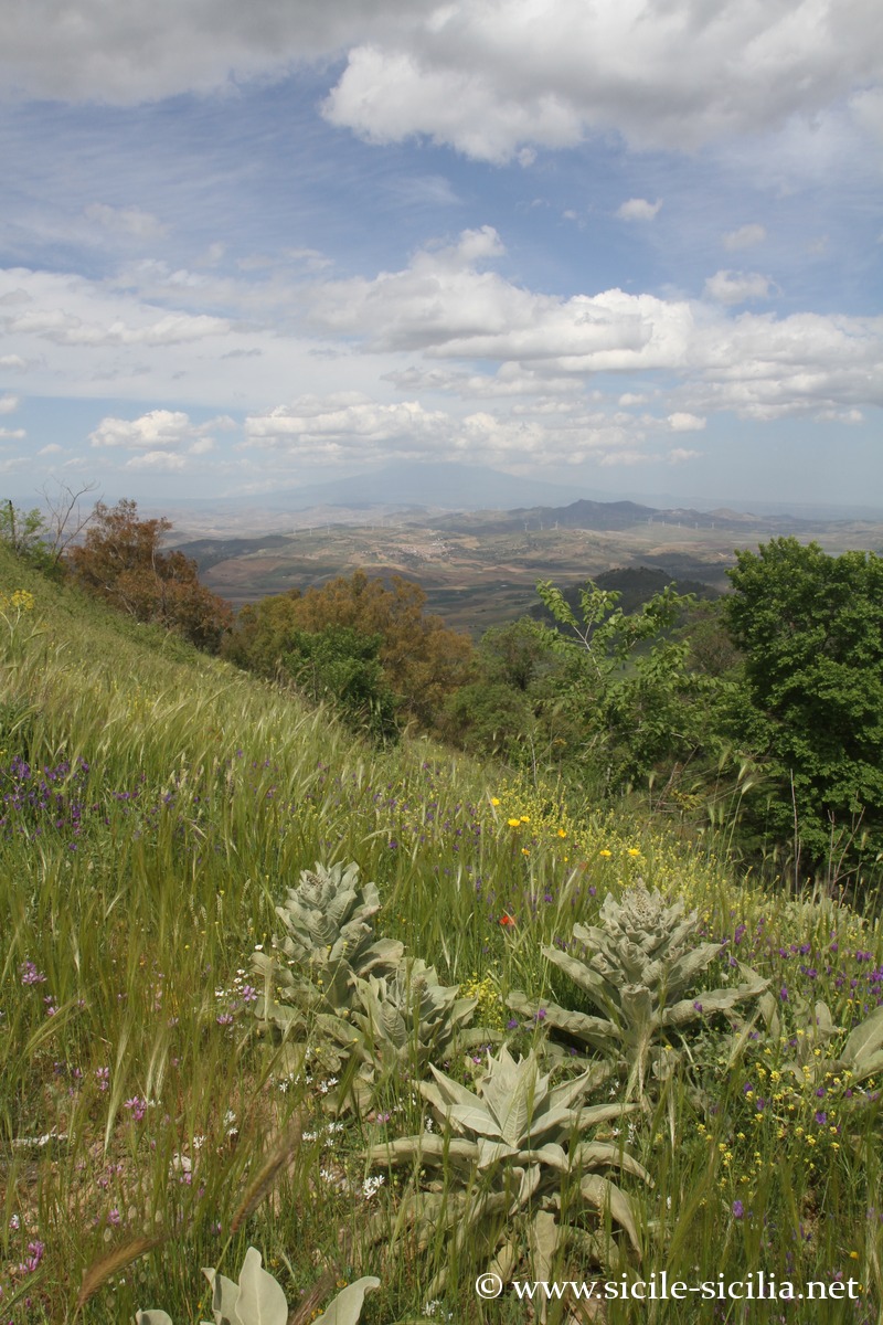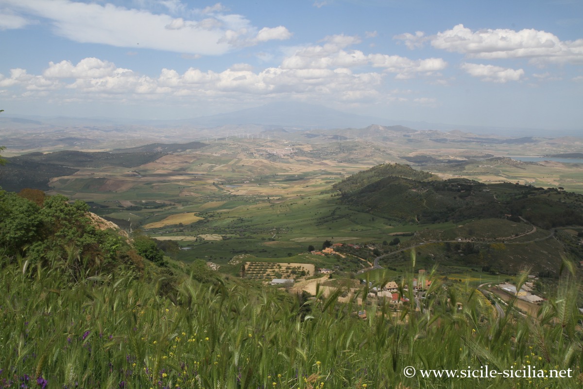 Le village d’Aidone est marqué par le moyen-âge, avec ses églises d’origine normande, ou dans les environs les suggetives ruines du château de Pietratagliata sur un rocher au bout d’un mur de roche coupant la vallée.