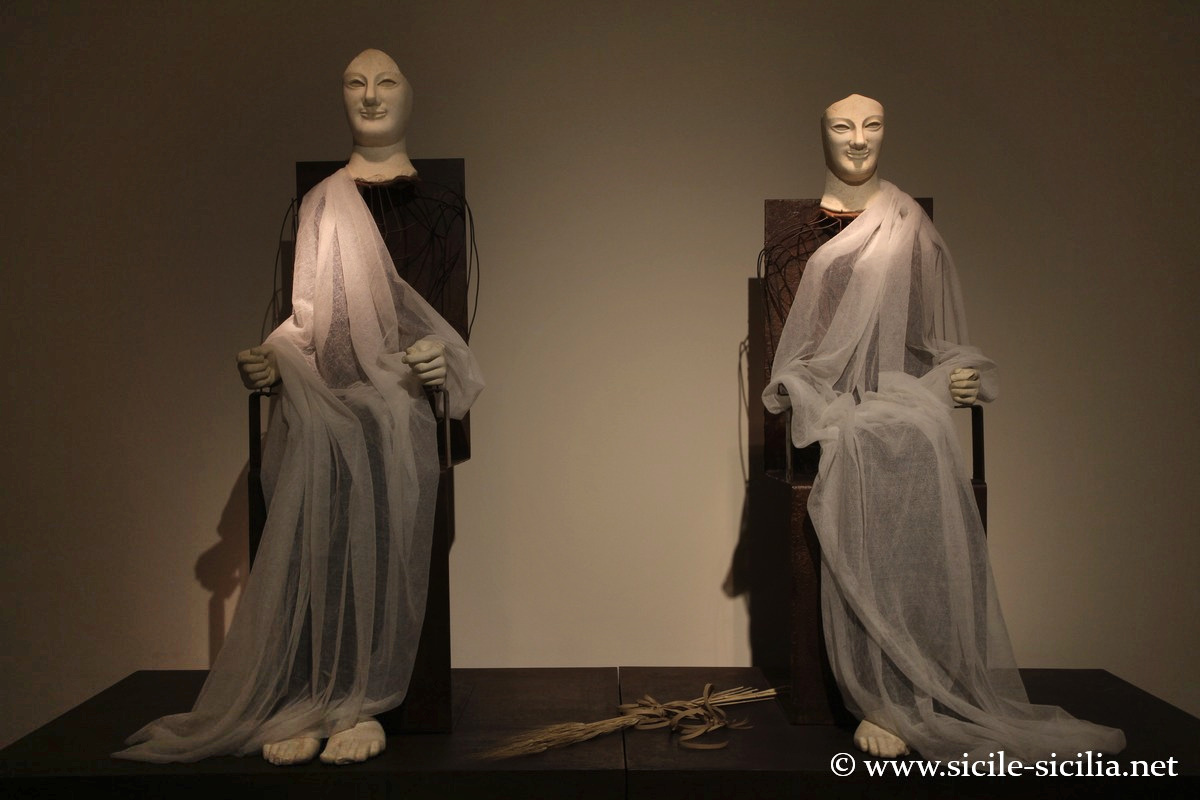 La Dea di Morgantina, haute de 2,24 mètres et datée du Ve siècle av. J.-C., qui représente probablement Déméter ou Perséphone. L’œuvre, influencée par le style de Phidias, provient d’un atelier du cercle attique classique, sans attribution certaine.