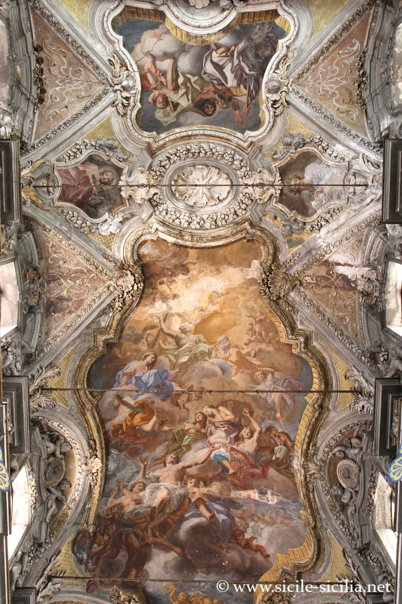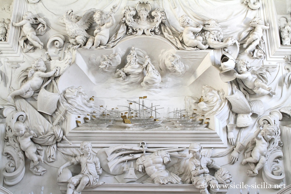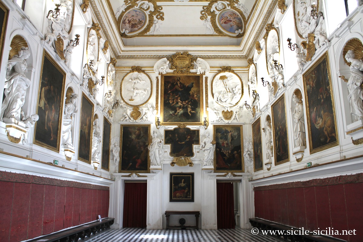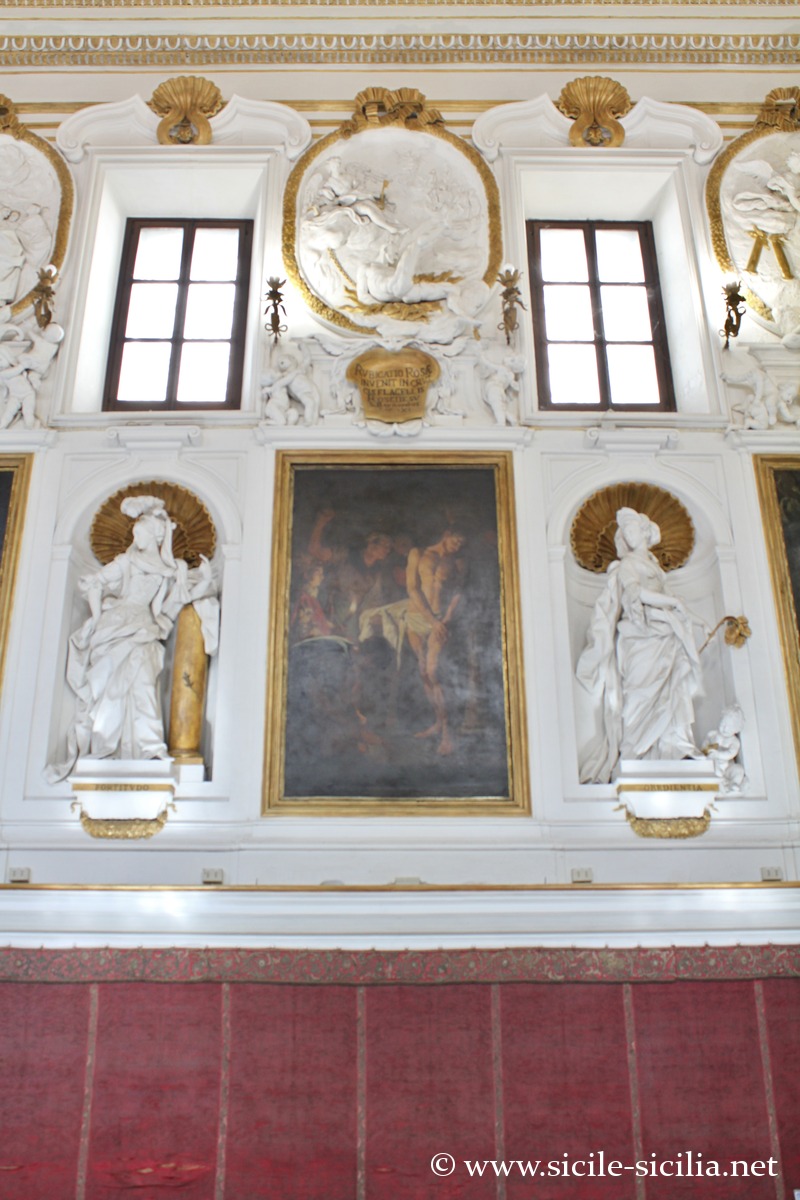 L’ornementation baroque y est foisonnante et raffinée avec les plafonds ornés de fresques, les parois couvertes de marbres, ou les stucs de Paolo Corso et Serpotta.