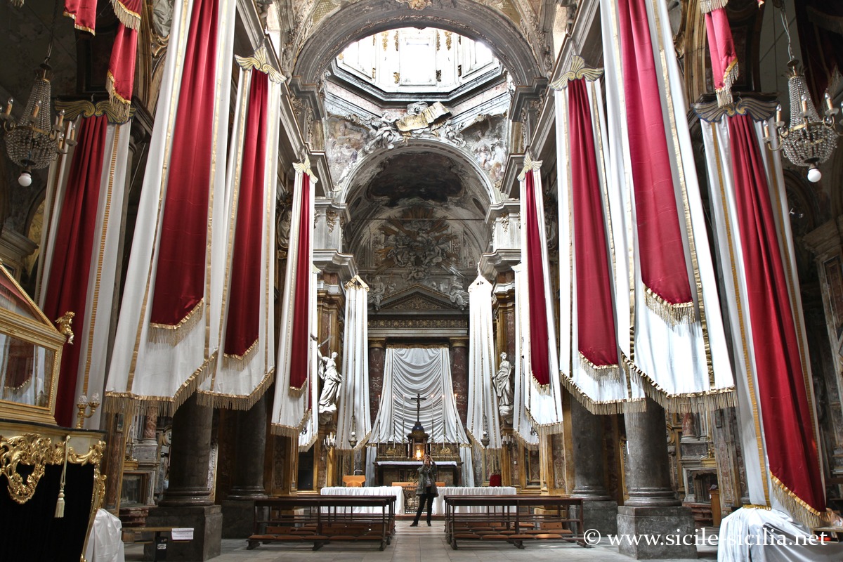L’intérieur est à trois nefs séparées par colonnes monolithiques et se termine par une tribune octogonale surmontée d’une coupole, œuvre du Renaissance Giorgio di Faccio ajoutée en 1568. La décoration des murs et des chapelles présente de précieux stucs du XVIIIe siècle de Procopio Serpotta, et parmi les œuvres figurent des peintures du XVIIᵉ-XVIIIᵉ siècle.