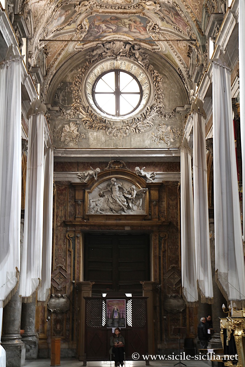Les autels latéraux sont enrichis de stucs baroques réalisés dans les années 1680 par Giacomo et Giuseppe Serpotta.