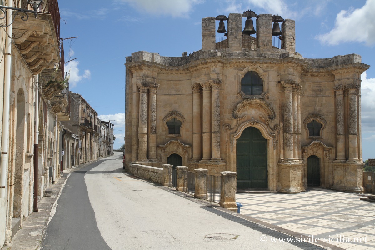 La Chiesa Madre, consacrée à la Natività di Maria Santissima, constitue l’église principale du village. Reconstruite après le séisme de 1693 et achevée vers 1769, elle présente une façade monumentale à trois ordres, typiquement baroque, en pierre calcaire locale ornée d’anges et d’apôtres. L’intérieur abrite des œuvres du XVIIe-XVIIIe siècle, dont un ancien baptistère (1558) et la toile L’Adoration des Mages de Mario Minniti. Elle conserve également le corps embaumé du martyr saint Pio, don pontifical du XVIIIe siècle.