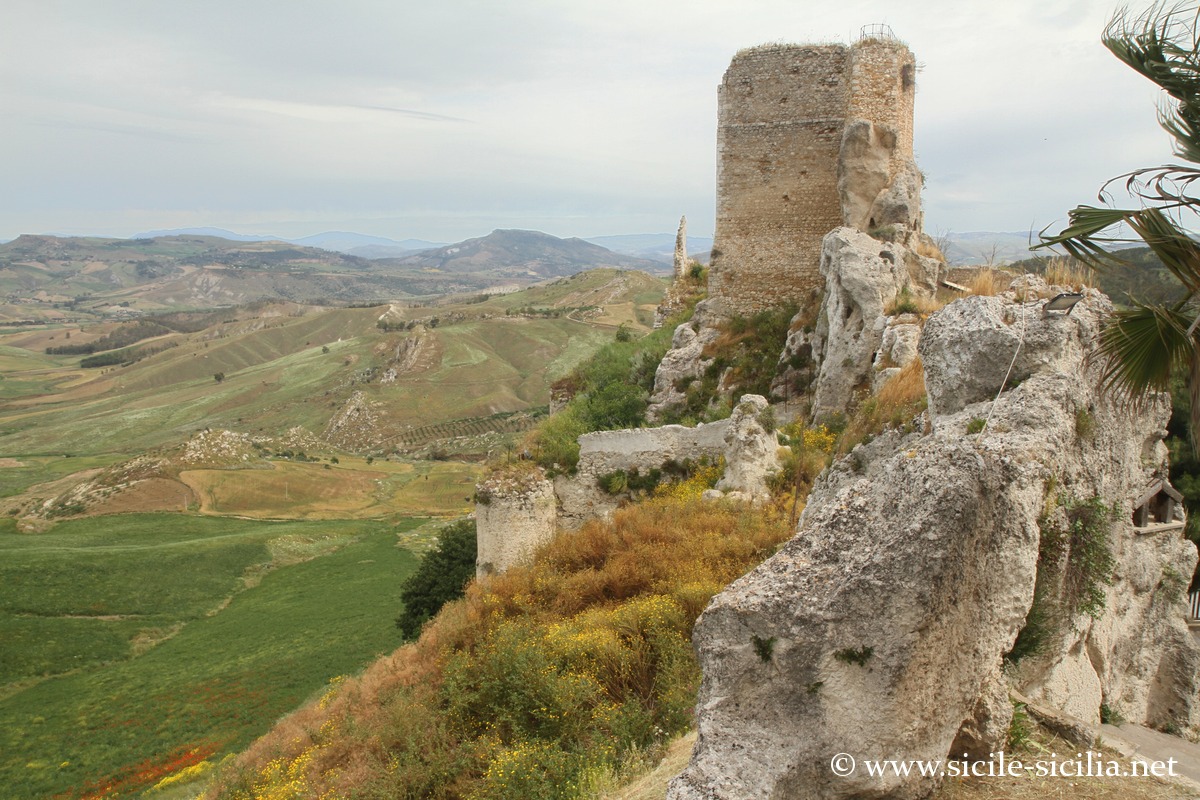 Près de Mussomeli (40 km à l’ouest), est perché au sommet d’un éperon de 80 mètres de hauteur le beau château Manfredonico Chiaramontano, symbole de la puissance des barons féodaux, construit au XIVe siècle par Manfred II Chiaramonte, de style gothique avec ses arcs en ogive typiques et ses fenêtres à meneaux. - Sutera