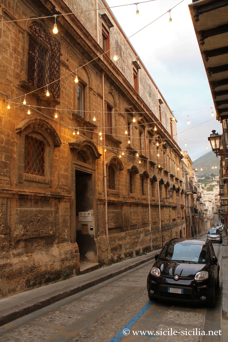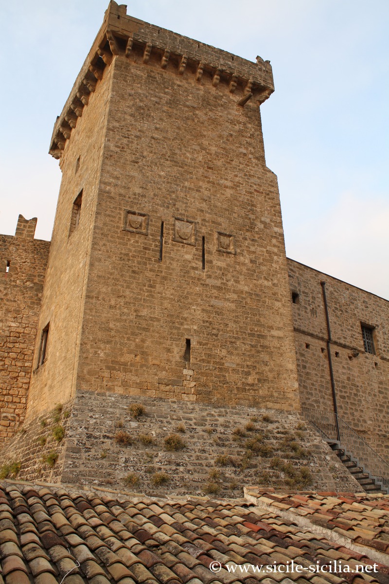 La tour du château, où l’on remarque le blason des Abbate domine le sud du pays. Une terrasse a été aménagée pour contempler la ville. Les Abbate furent une autre famille influente de Carini.