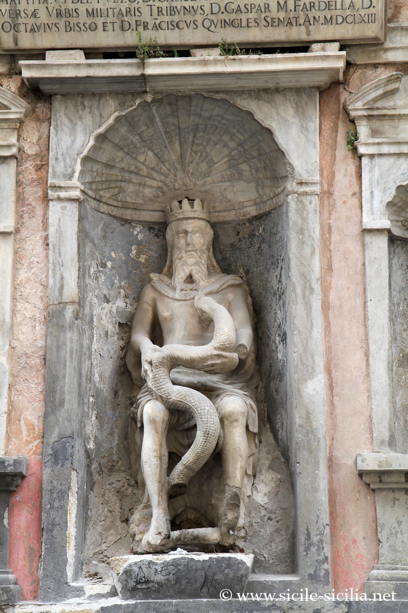 Créée par Pietro de Bonitate en 1483, c’est une des sept principales représentations du Génie de Palerme, ancienne divinité tutélaire, protecteur laïc et emblème de la ville. Étant le plus grand de ceux-ci, il est aussi désigné dans le dialecte local comme Palermu lu Grandi. Une autre plus petite, Palermu lu Nicu (le petit), se trouve notamment dans le Palazzo Pretorio, siège de la mairie.