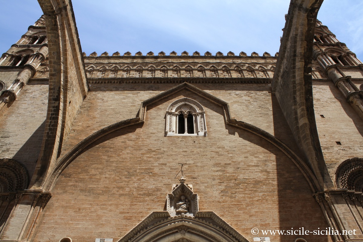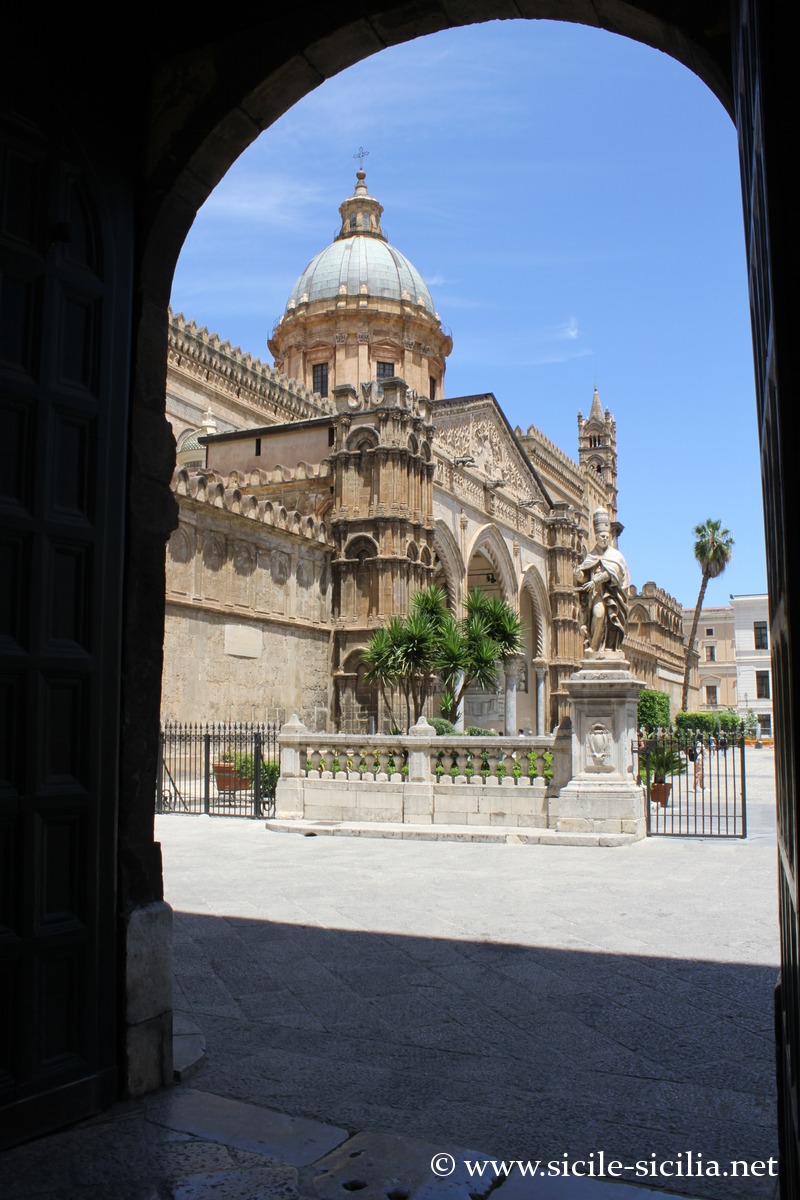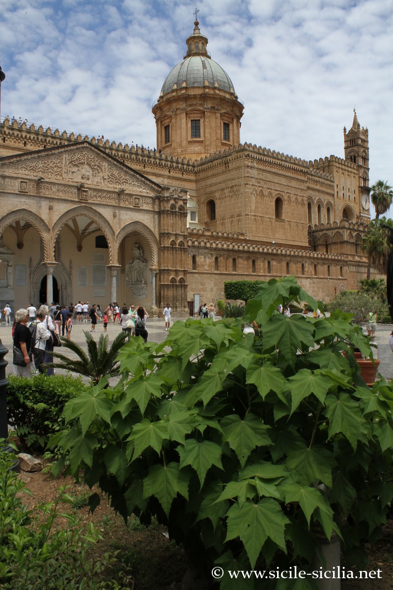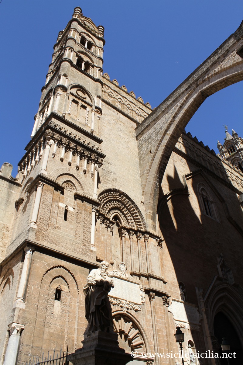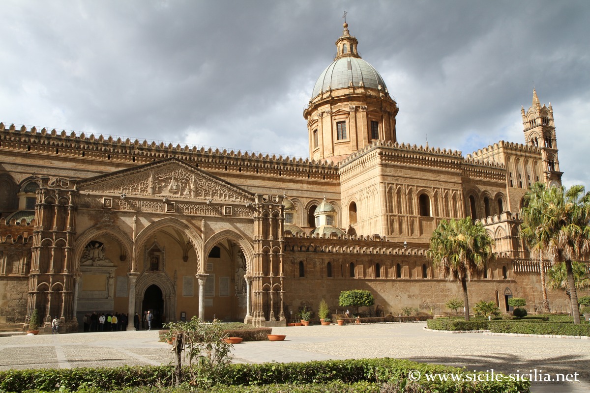 La cathédrale de Palerme, dédiée à Notre-Dame de l’Assomption, est fortement marquée par le style arabo-normand propre à la Sicile, inscrit au patrimoine mondial de l’UNESCO parmi d’autres édifices dans le cadre de la « Route des cathédrales arabo-normandes » reliant notamment Palerme, Cefalù et Monreale.