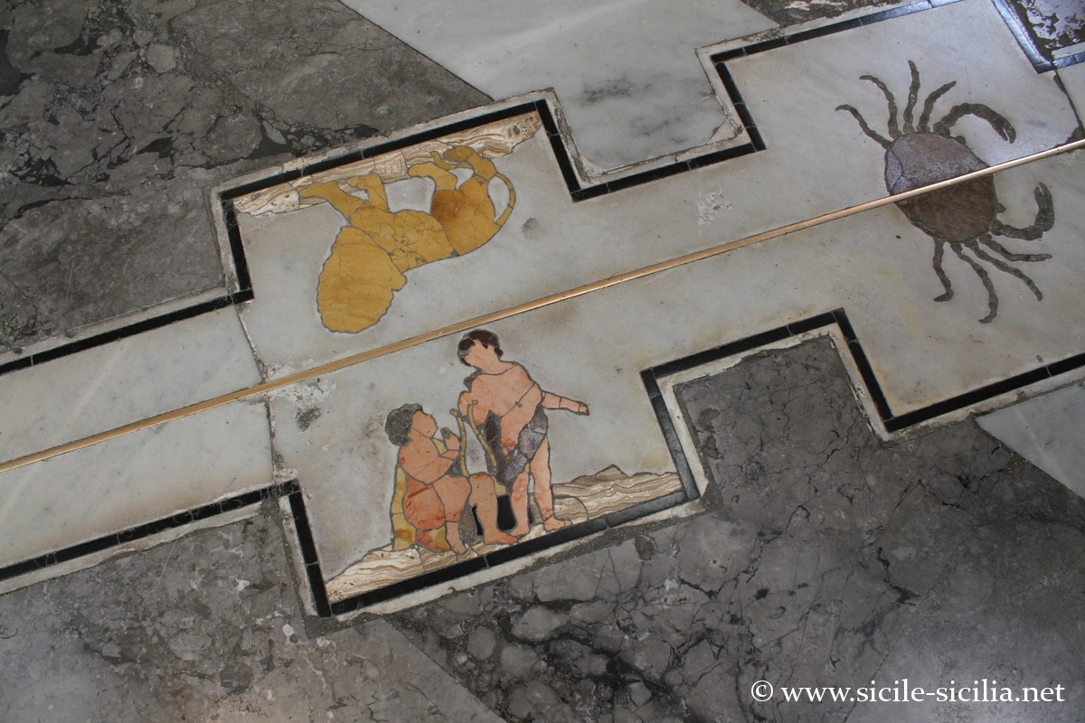 Au sol de la cathédrale, une méridienne solaire de 1690 servant à déterminer précisément le midi et les solstices grâce à un petit orifice dans le dôme projetant l’image du soleil sur une ligne gravée au sol.