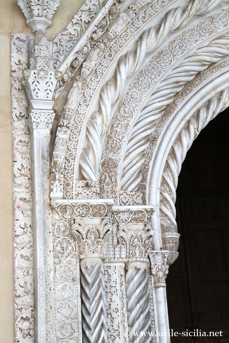 - Façades et extérieur arabo-normand : admirez la façade ouest, les tours, le portique gothique catalan du XVe siècle et les détails sculptés, dont les inscriptions arabes et la mosaïque de la Vierge.