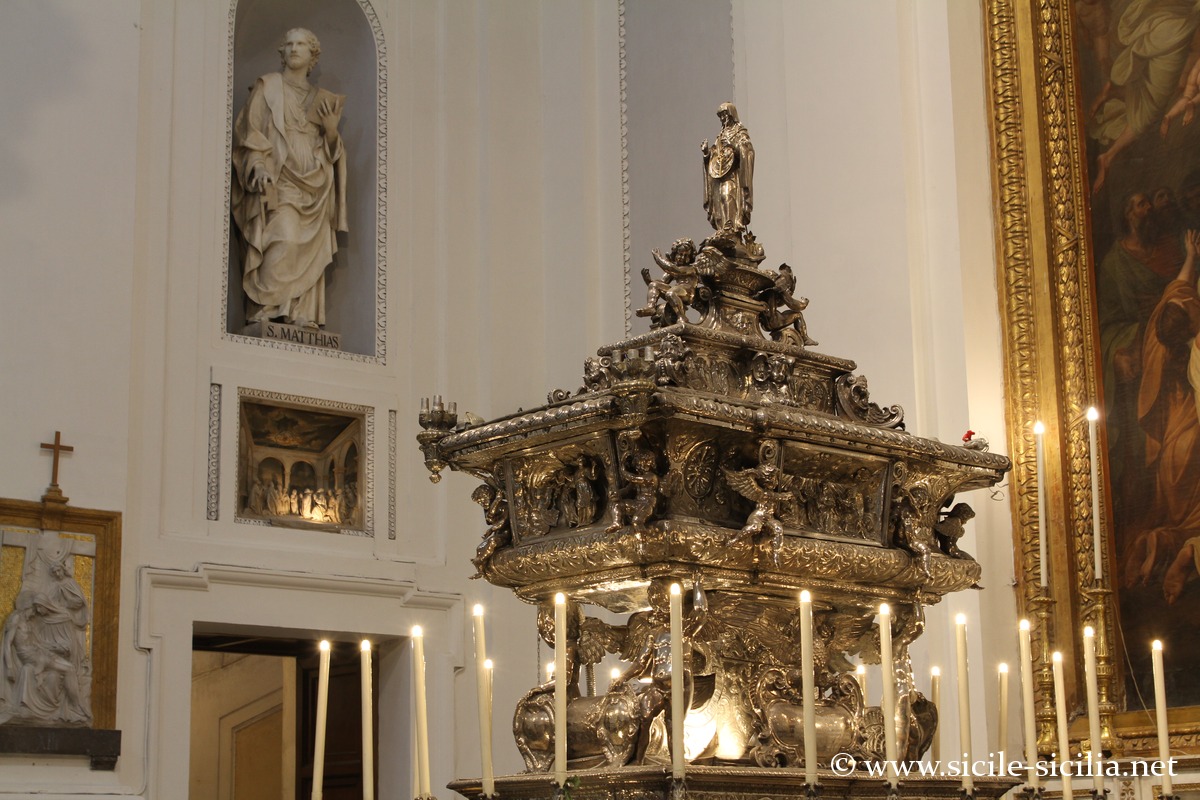La Chapelle des reliques, distincte de la chapelle de Sainte Rosalie, qui conserve des reliques de plusieurs saints vénérés localement, notamment Sainte Christina, Sainte Ninfa, Sainte Cosma, Sainte Agathe et Saint Mamilianus, ce dernier étant considéré comme l’un des premiers patrons de Palerme.