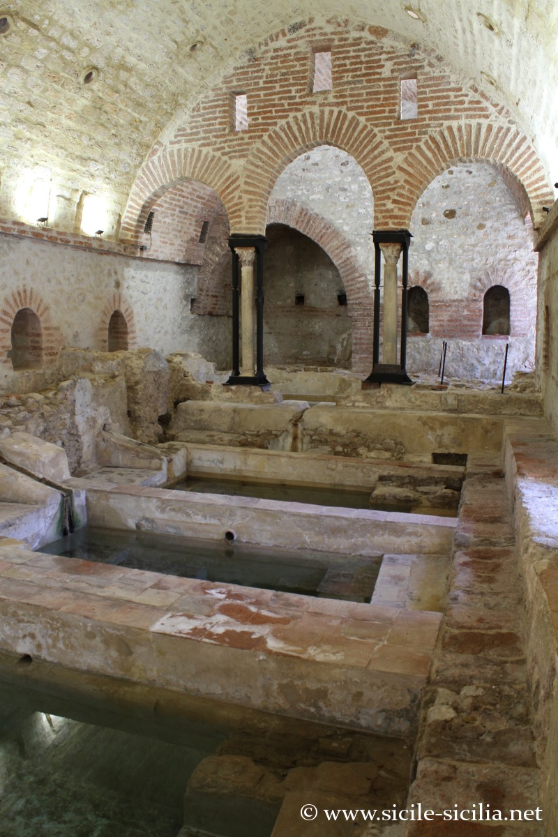 Un ancien chemin relie le château aux thermes nommés Bagni di Cefalà situés plus bas au nord, à 2 km à pieds. C’est un complexe thermal voûté en ogive qui remonterait à la fin de l’époque normande, dont les eaux sulfureuses liées à un système géologique encore actif gardent une température comprise entre 36° et 38°.