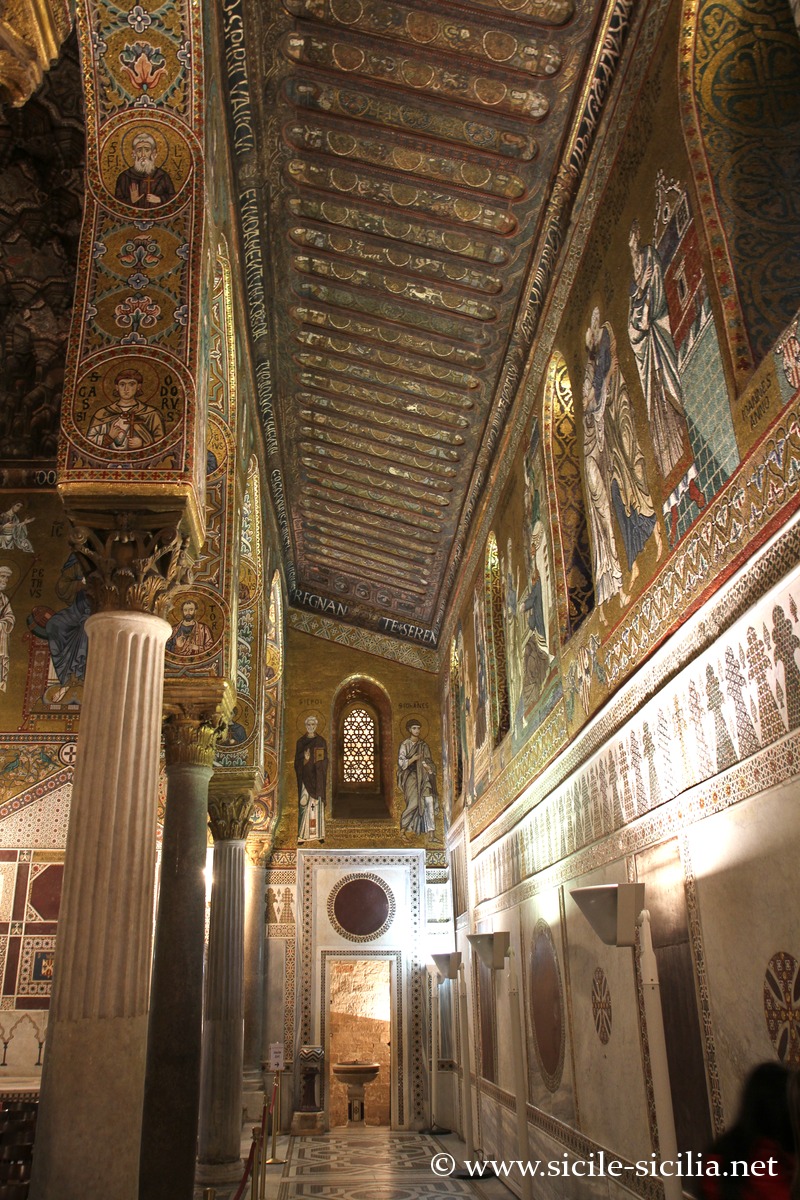 La Chapelle Palatine combine des éléments d’architecture normande occidentale, byzantine orientale et islamique dans une configuration unique en Méditerranée médiévale.