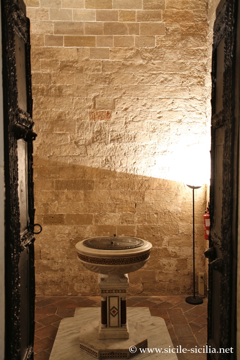 Le sol de la chapelle est un exemple remarquable d’opus sectile : un pavement constitué de marbres polychromes et de tondos de porphyre, disposés en motifs géométriques complexes (étoiles, quincunxes, entrelacs), reflet de l’influence orientale et byzantine sur la tradition mosaïque sicilienne.
