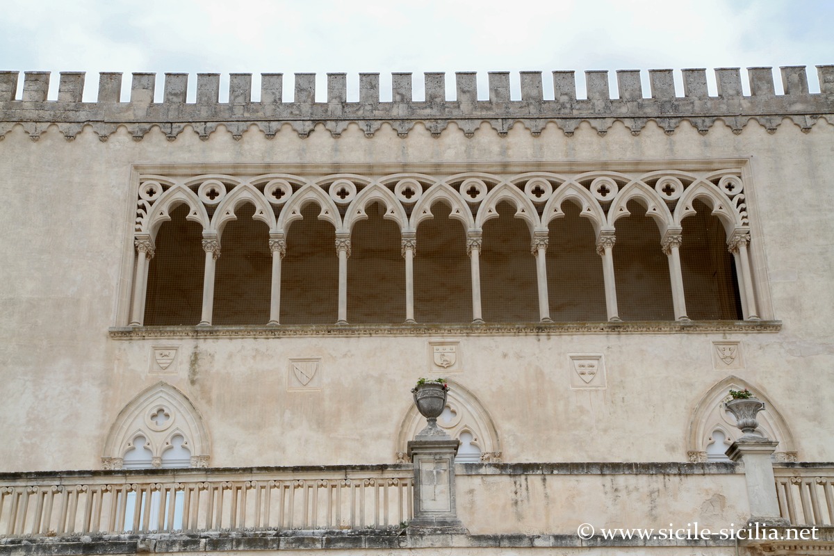 L’édifice actuel est le résultat de modifications opérées dans la seconde moitié du XIXe siècle par le baron Corrado Arezzo, noble et homme politique sicilien. Il fit agrandir la bâtisse, l’éleva à trois niveaux, y intégra deux tours latérales, adopta un style néo-gothique mêlé à des références vénitiennes et mauresques. Il aménagea une loggia, de larges fenêtres à meneaux, stucs et décorations intérieures sophistiquées, afin d’en faire une résidence aristocratique luxueuse. Des jardins paysagers et des structures insolites comme un labyrinthe en pierre furent aussi créés.