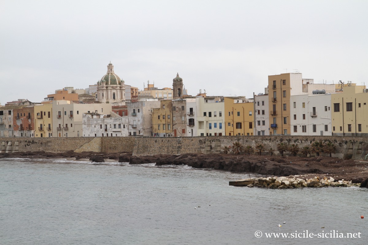 Trapani est proche de la ville médiévale d’Erice, sur les hauteurs vers l’est, et en face des îles Egades quelques kilomètres au large.
