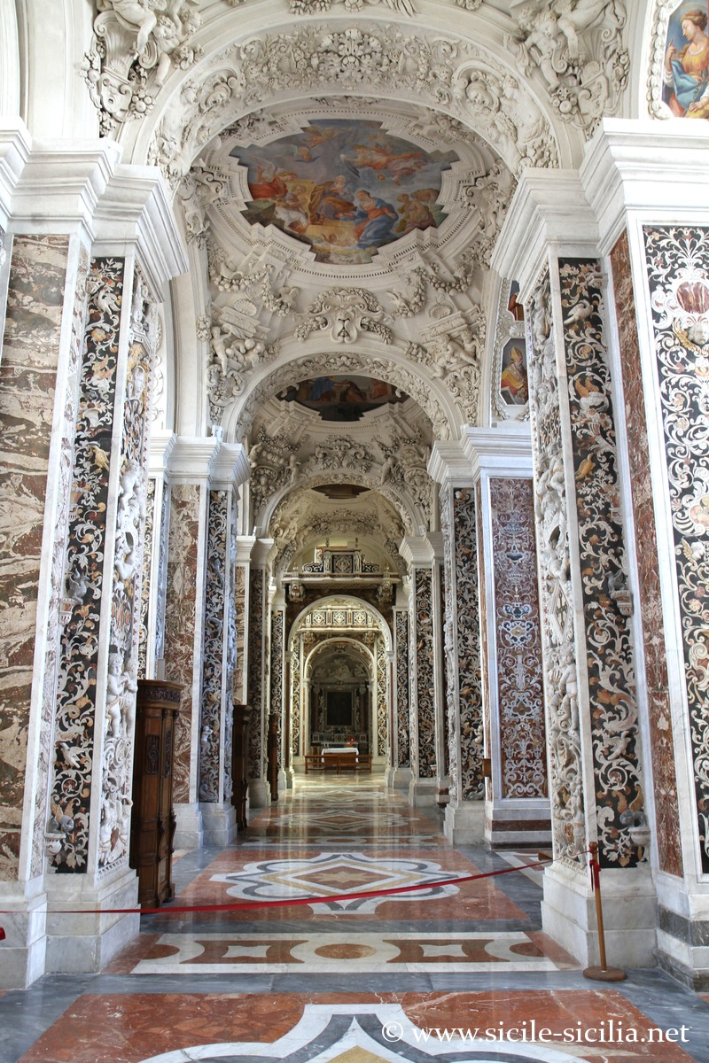 Mentionnons aussi la très belle chapelle Sainte-Anne dans le transept, avec sur l’autel le tableau de la Sainte Vierge, les sculptures dans les niches des murs, et les fresques du dôme de Pietro Novelli.