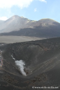 Autour du cratère central de l’Etna, haut de 3323 mètres, il y a de nombreux cratères secondaires.