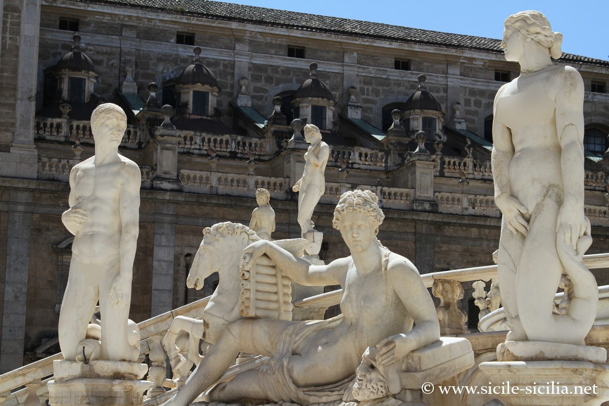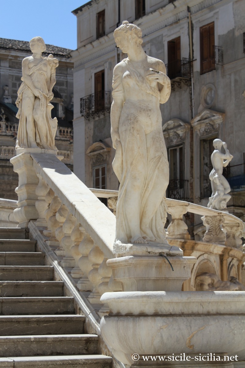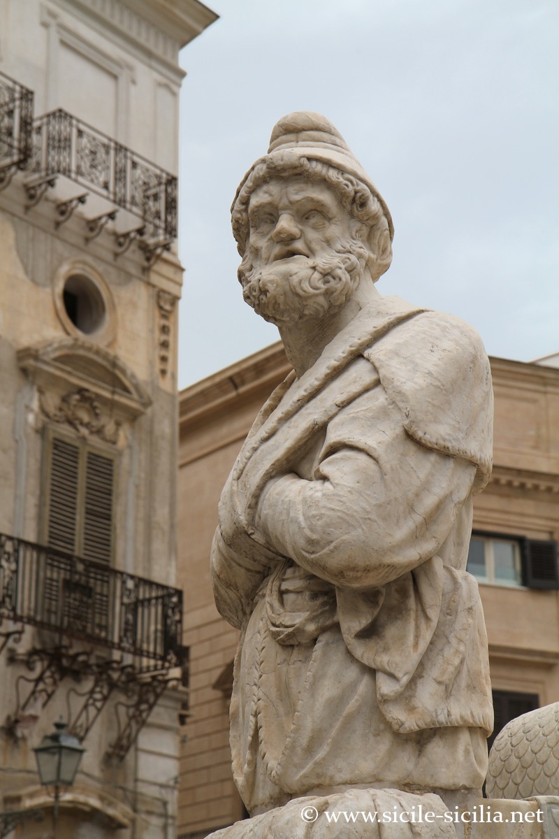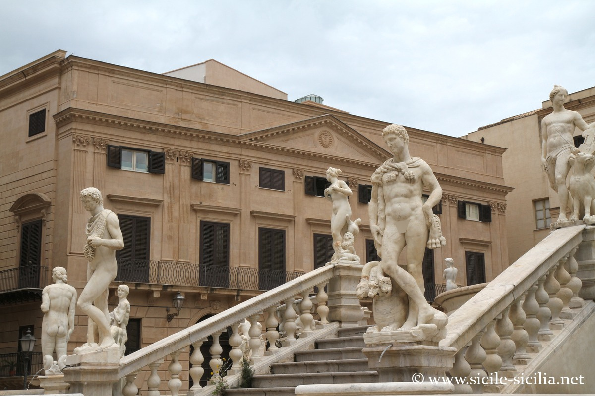 Aux XVIII et XIXe siècles, la place était appelée par les palermitains « Place de la Honte », en référence à l’administration corrompue de la ville, ainsi qu’à la nudité des statues de la fontaine.