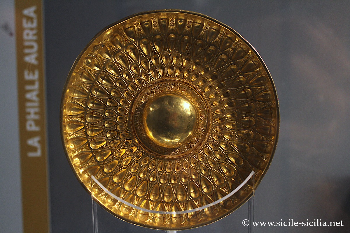 Le plus bel objet exposé est une coupe en or (phiale d’oro), gravée de pommes de pin. La fin de la visite se termine par la mosaïque polychrome de style africain, trouvée dans la villa romaine de Settefrati (à l’ouest de Cefalù).