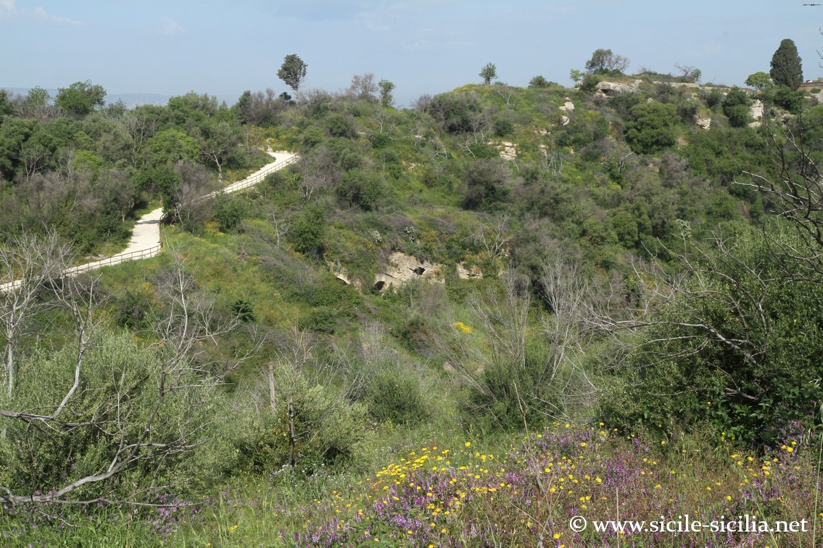 Au VIe siècle une enceinte fut construite pour protéger les deux collines et le centre de la vallée, bloquant l’entrée nord avec la porte de Syracuse, au de laquelle s’étend la nécropole hellénistique, avec plus de 600 tombes dont des petits monuments funéraires (datant des IVe et IIIe siècles avant notre ère).