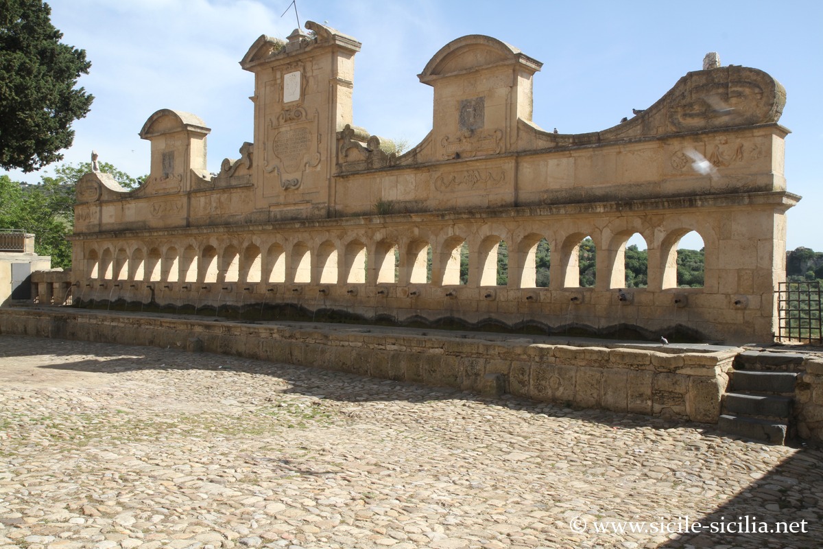 Au pied méridional de Leonforte, cette dernière remplaça une ancienne fontaine arabe, construite par le prince Placido Branciforti en 1651, étant le principal abreuvoir public. Sa création est attribuée à l’architecte palermitain Smiriglio, inspirée de créations flamandes à la mode en Sicile à l’époque. De style baroque, elle est longue de 24,60 mètres, avec 22 arcades ou niches voûtées, 24 cannelles en bronze et des sculptures.