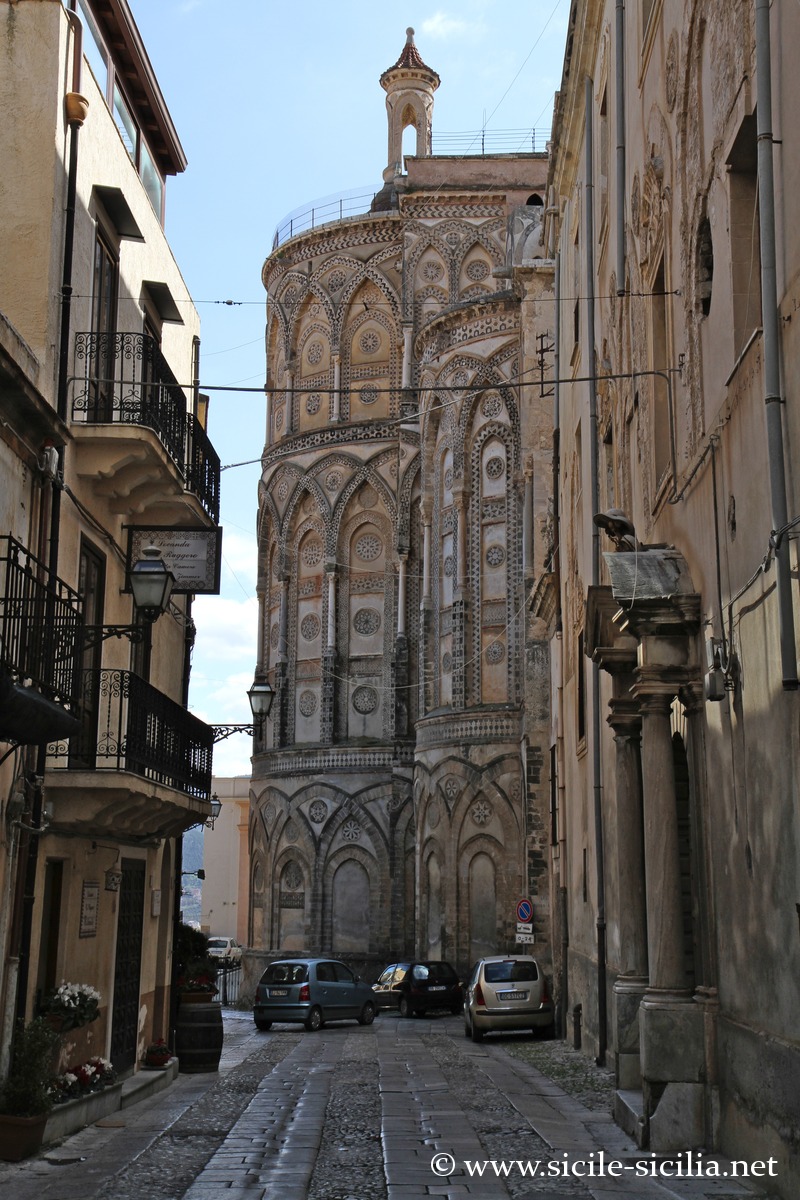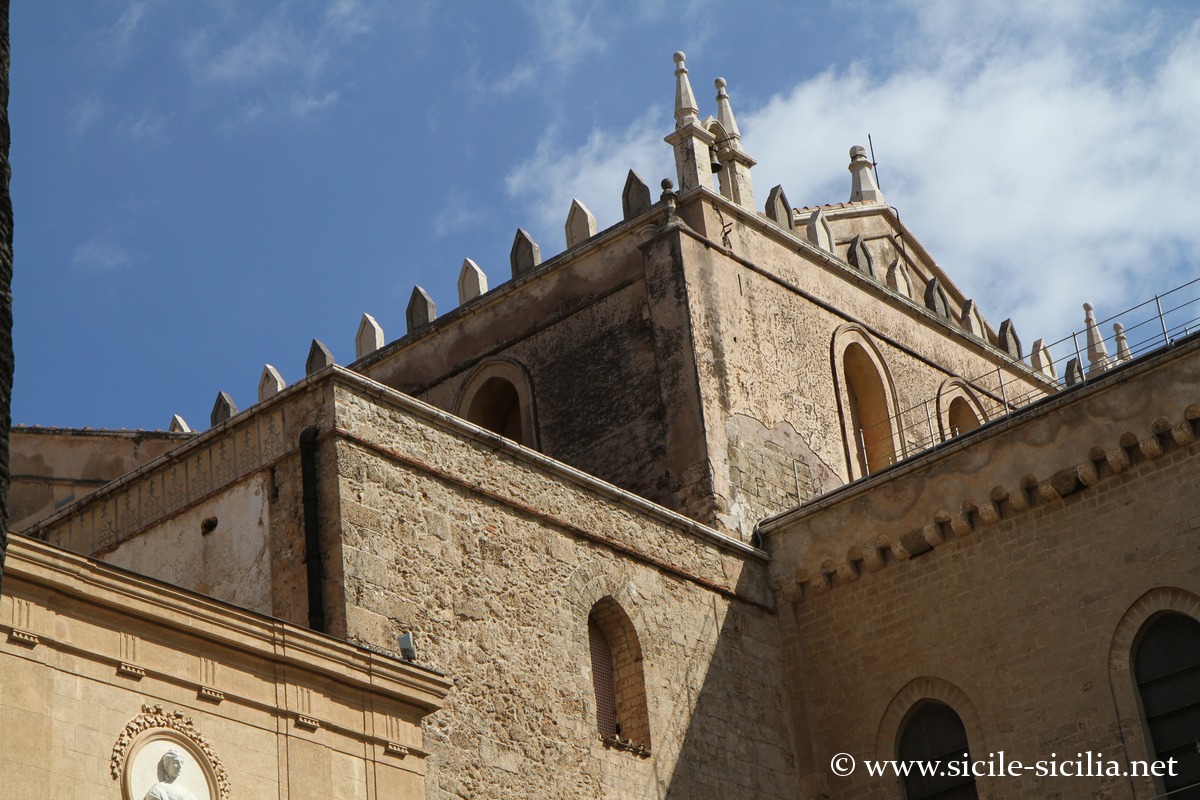 Ce joyau arabo-normand affiche un extérieur massif, édifice typique des constructions normandes, long de 102 mètres, avec deux grandes tours dont une fut une partiellement détruite, un portail roman avec des portes en bronze, un intérieur divisé par des arcades ogivales, et de grands cycles de fresques réalisés sous Guillaume II et Tancrède de Sicile.