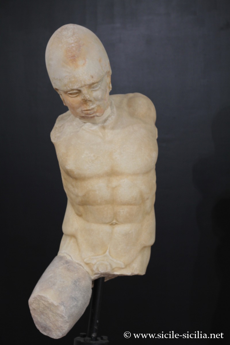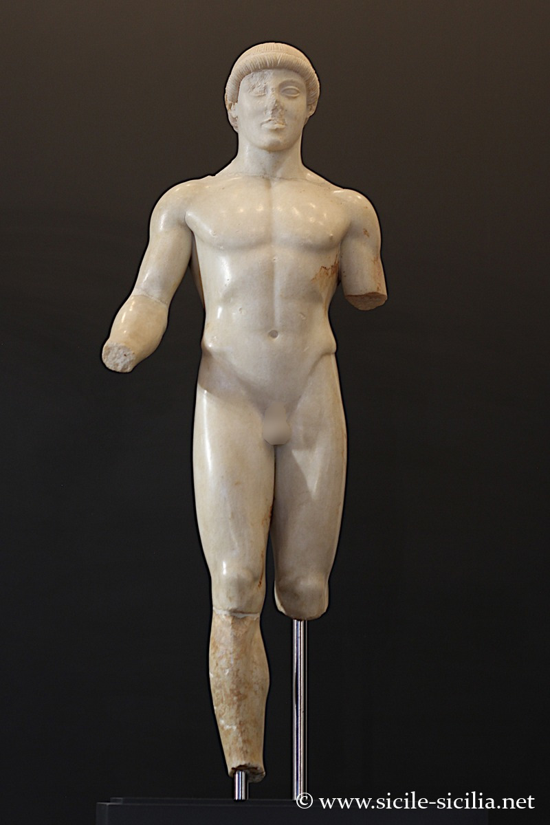 La collection comprend également l’Éphèbe d’Agrigente, ou kouros d’Agrigente, une sculpture en marbre datée vers 480–470 av. J.-C., représentative du style sévère grec. Elle est exposée dans la salle X, au sein du parcours consacré à la ville d’Akrágas.
