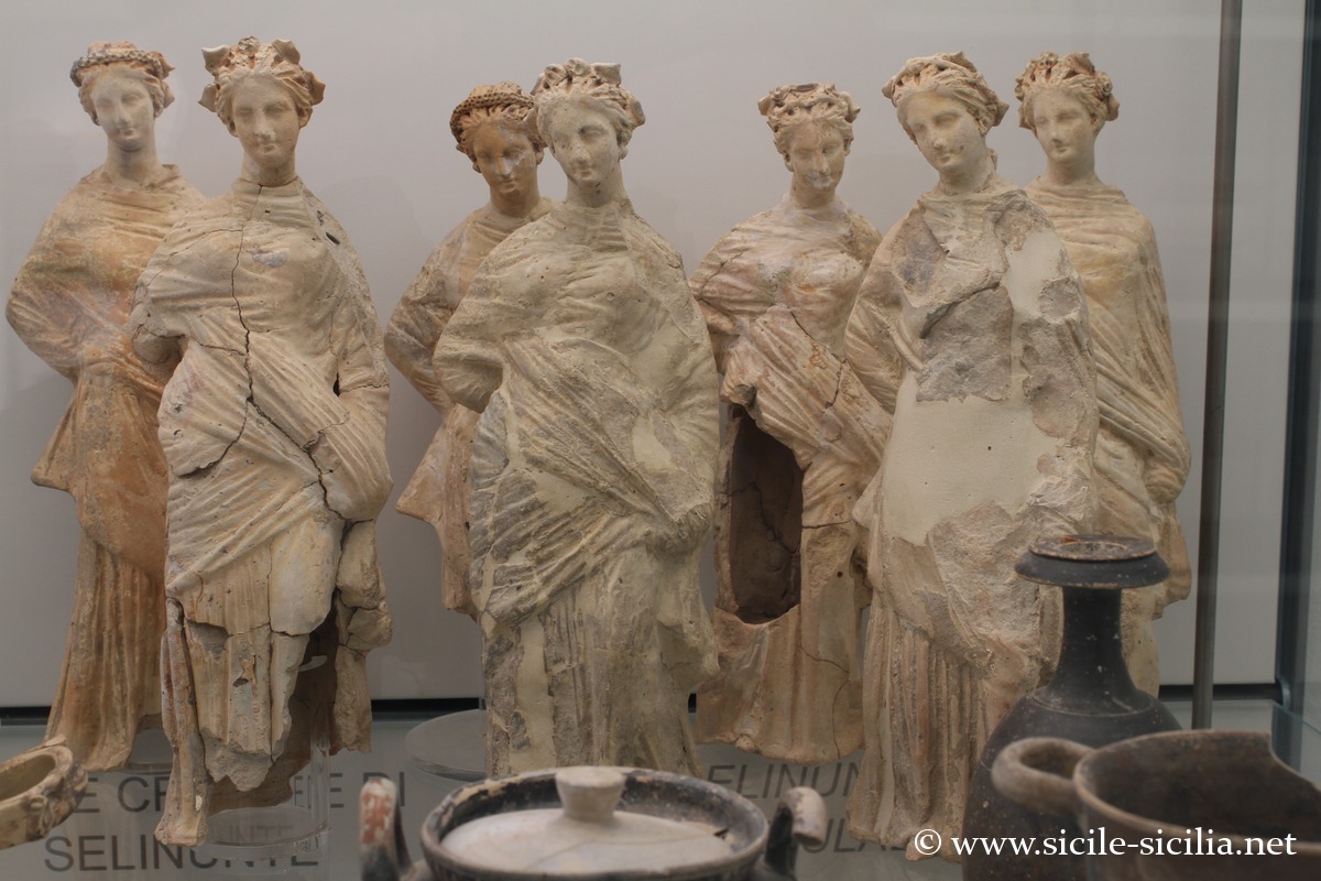 Une section importante est consacrée au site archéologique de Sélinonte, avec les métopes des temples portant des reliefs mythologiques, et diverses sculptures des époques archaïques et classiques. Elle compte huit salles thématiques qui présentent l’architecture, la sculpture et la vie religieuse de la cité grecque. On y trouve également un modèle de la ville antique et des objets votifs en bronze, armes, outils et céramiques qui illustrent la vie quotidienne et les pratiques cultuelles des habitants.
