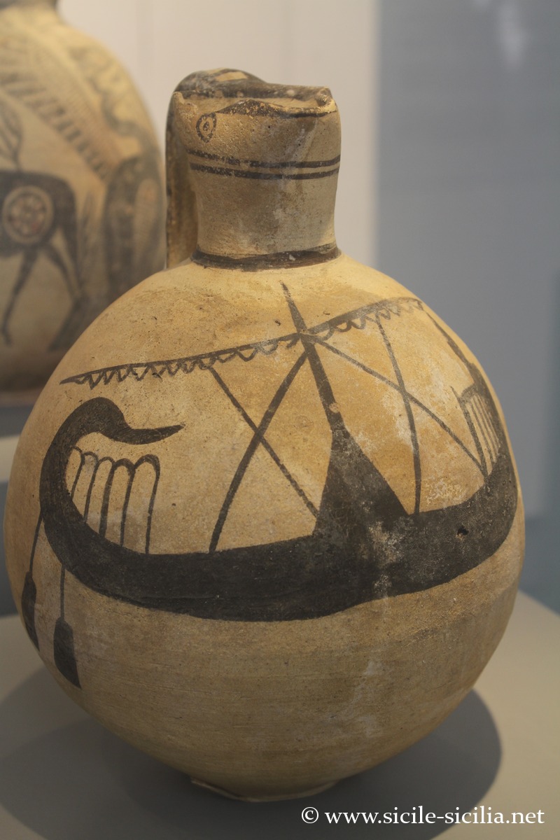 Cruche chypriote avec représentation d’un navire phénicien (datant de 750-600 av. J.-C.)