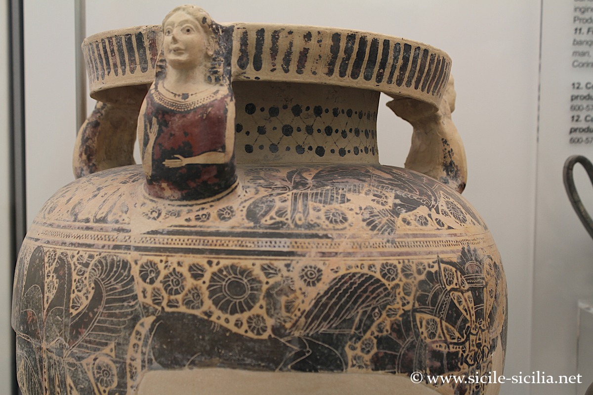 D’autres salles conservent des découvertes des sites de colonies grecques tel que Solonte, Megara Hyblaea, Tyndaris, Camarina et Agrigente, ou Himère avec les corniches sculptées de lions datant de 480 avant J.-C.