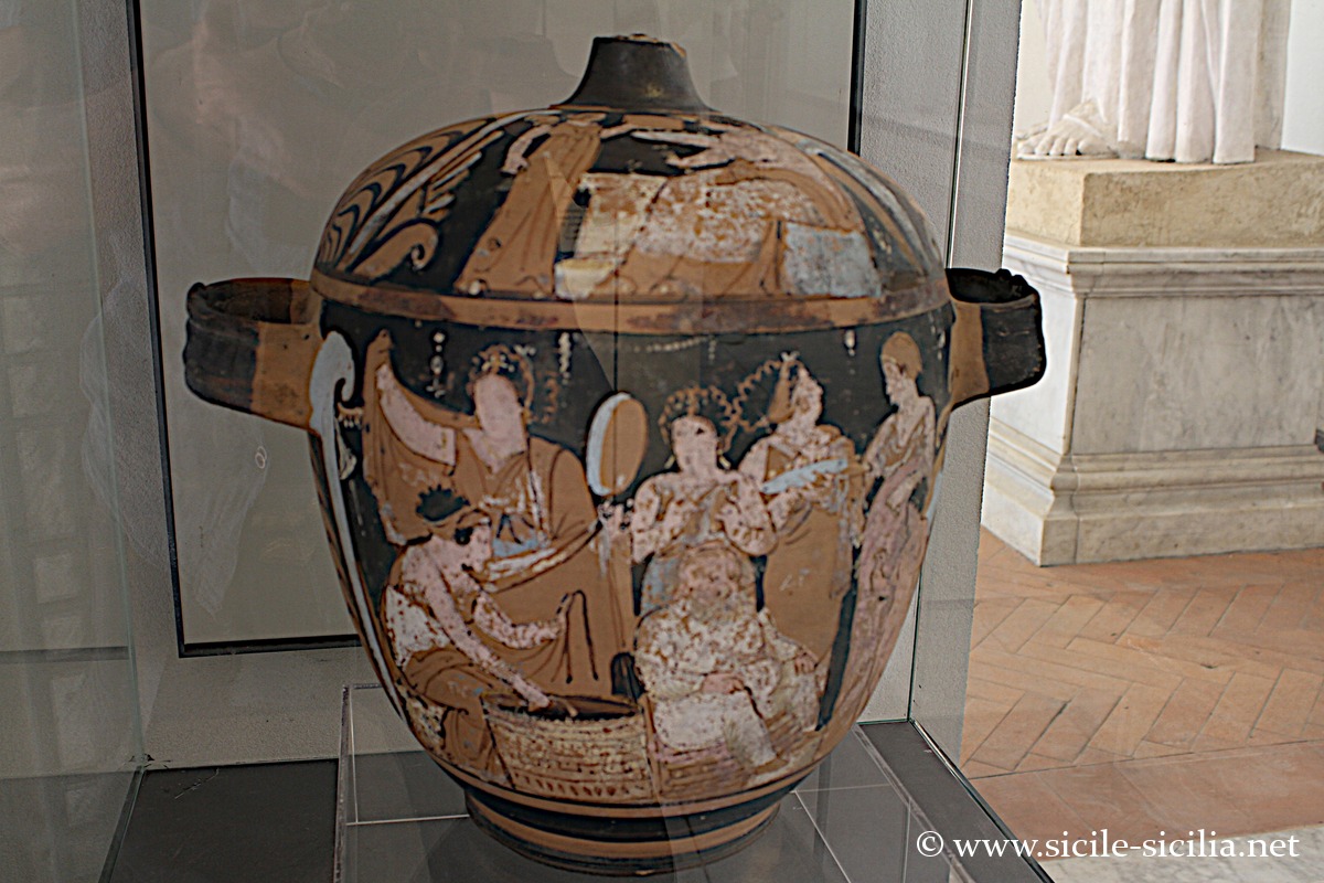 Parmi les œuvres les plus remarquables, il y a dans la salle des bronzes le grand Bélier en bronze du IIIe siècle avant notre ère de Syracuse, l’un des rares grands bronzes hellénistiques conservés à ce jour.