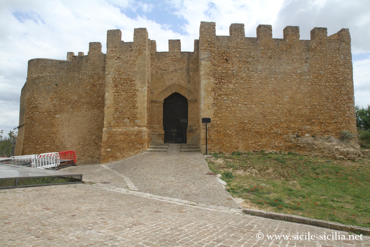 Le Château Chiaramonte de Naro, construit sur un ancien fort arabe, occupe un éperon stratégique dominant toute la vallée. Les Normands consolidèrent cette première structure avant que les Aragonais ne la transforment profondément : dans les années 1330, Frédéric III fit ériger le grand donjon carré de 21 m et réorganisa l’ensemble défensif. Le complexe adopta alors sa configuration actuelle, avec deux tours cylindriques, deux tours quadrangulaires, un portail ogival et une vaste cour centrale dotée d’un puits et d’une citerne. Autour de cette cour s’articulaient les bâtiments militaires, les écuries et une chapelle, tandis que la « Salle du Prince » présentait des éléments gothiques propres au style chiaramontain. Résidence féodale de la famille Chiaramonte à la fin du Moyen Âge, le château témoigne d’une succession d’époques superposées. Aujourd’hui, il abrite deux expositions permanentes : une sur les inventions de Léonard de Vinci et une autre regroupant des robes et accessoires féminins du XIXᵉ siècle issus des familles notables de Naro.