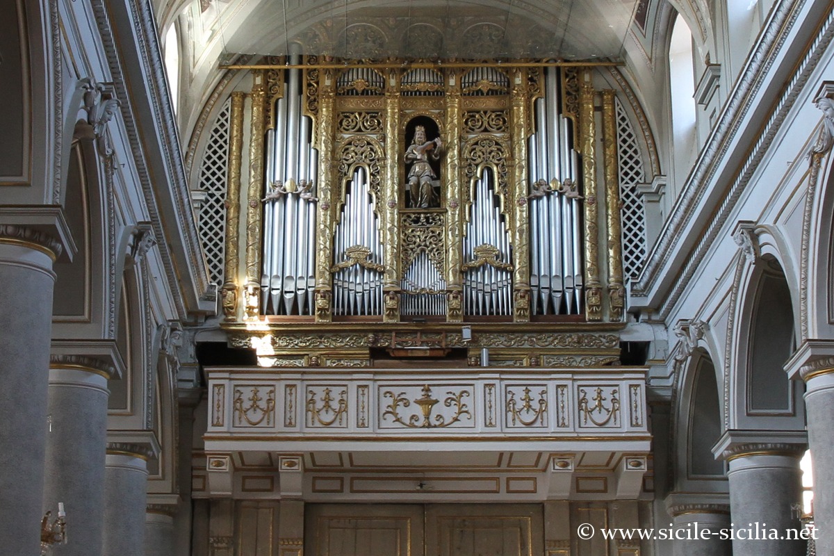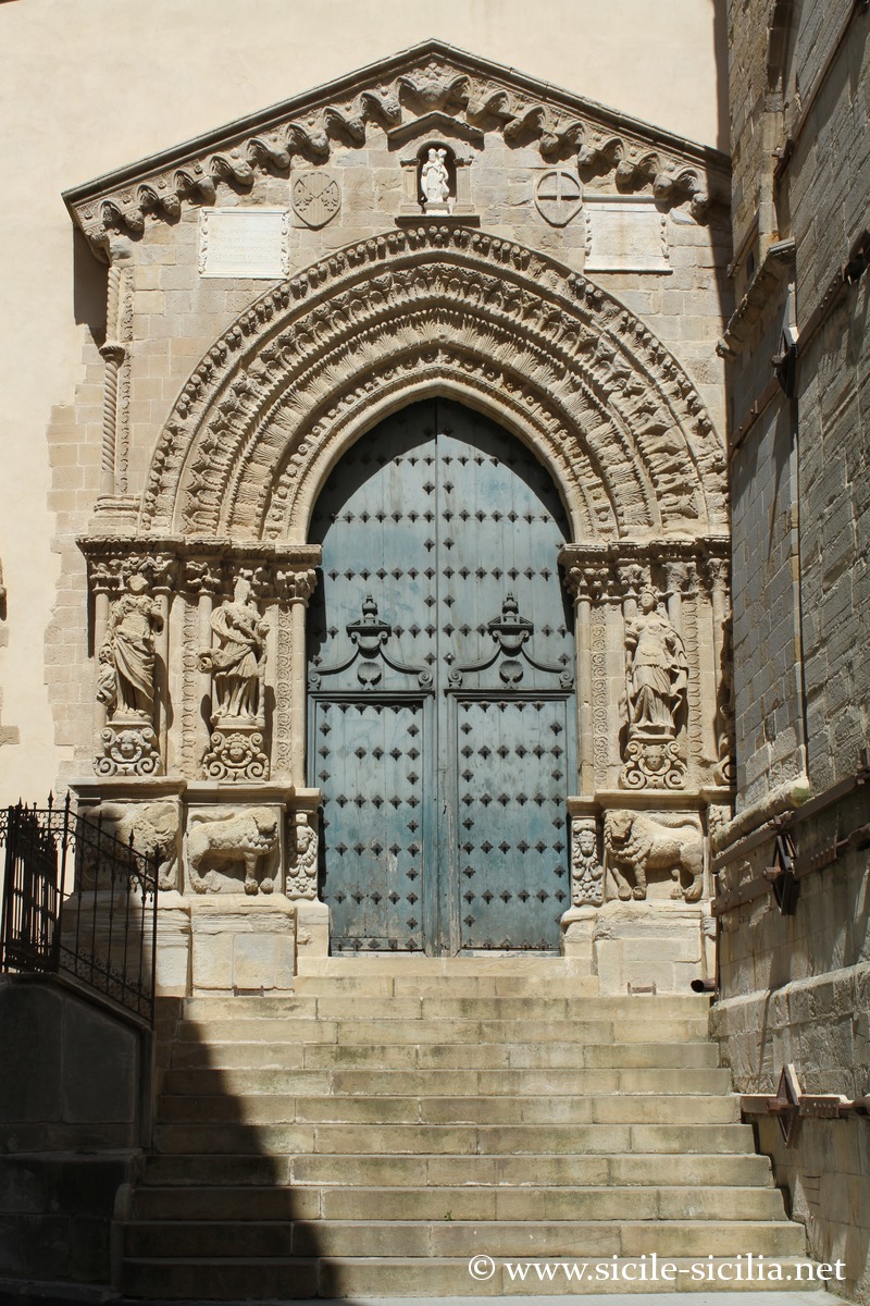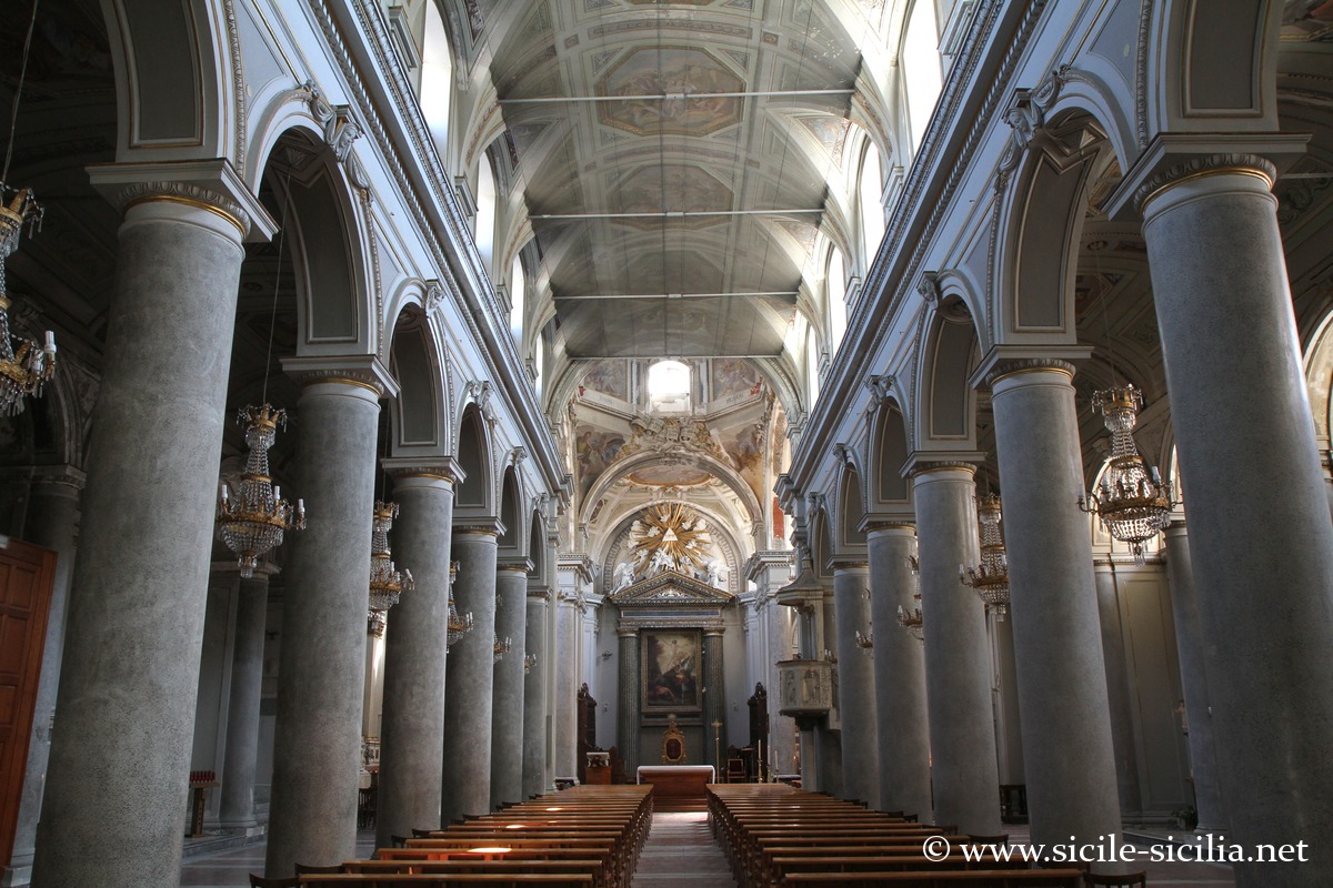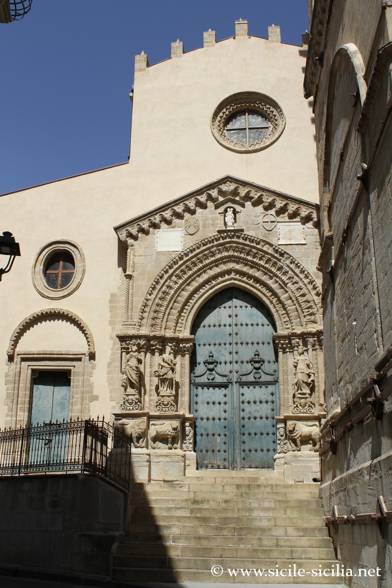 Le principal lieu de culte est la cathédrale San Nicolò, de style gothique construite en 1340, avec un plafond en bois orné de fresques, et des sculptures en marbre de Gagini.