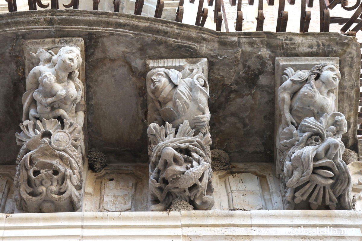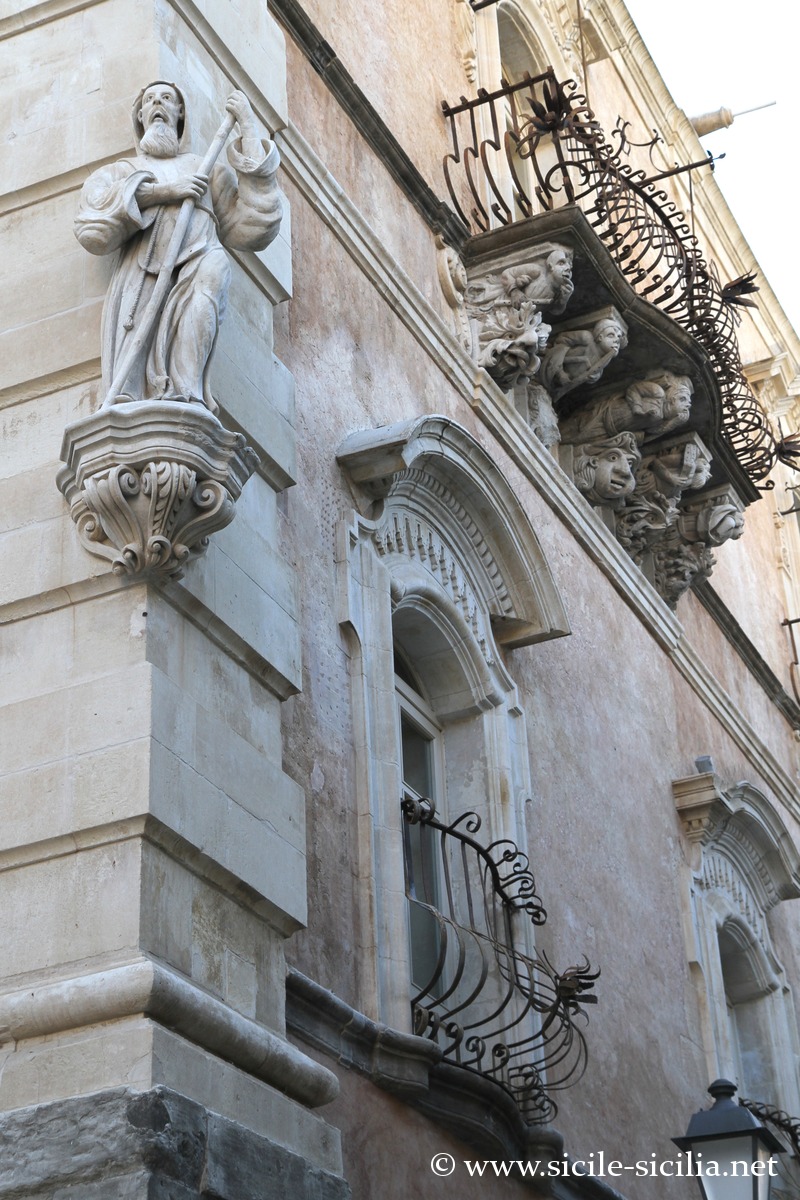 Le Palais Cosentini est emblématique du baroque sicilien, avec ses étonnantes consoles de balcons sculptées qui sont parmi les plus expressives de la ville.