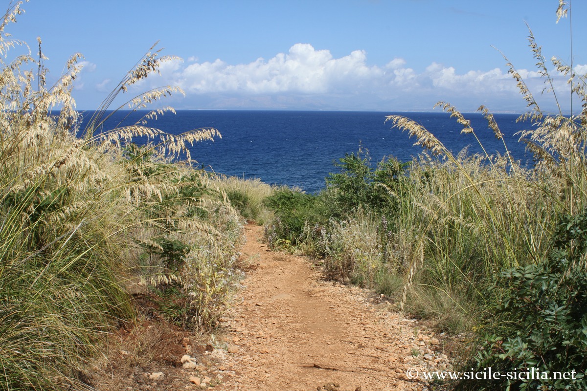 Le principal sentier côtier long de plus de 7 km relie l’entrée côté Scopello au sud à celle voisine de San Vito lo Capo au nord, passant par de nombreuses jolies criques aux eaux transparentes invitant irrésistiblement à la baignade. Par la route, il faut faire un grand détour pour relier ces deux entrées, de près de 55 km.