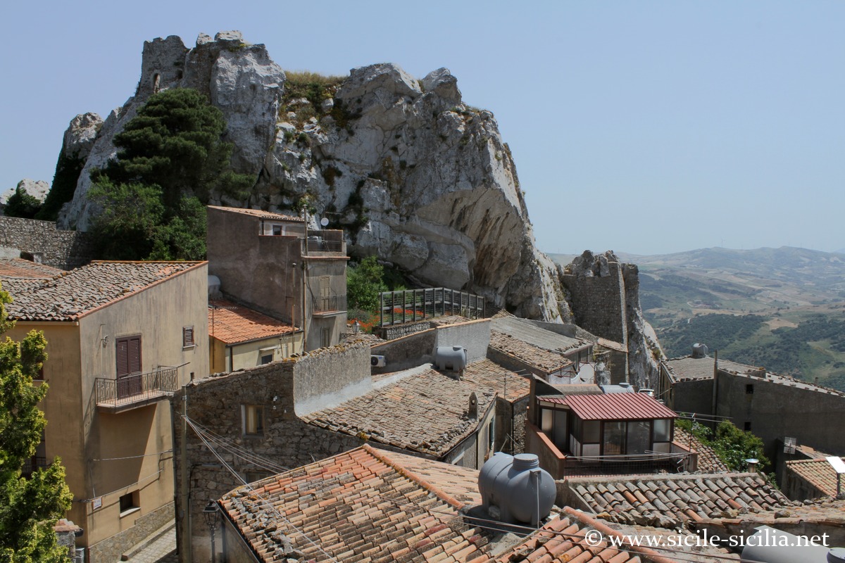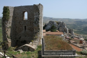 Vers 750 mètres d’altitude, il reste quelques ruines de son château au bout de l’éperon rocheux, ayant été restauré au XIVe siècle par Matteo Sclafani, le conte d’Adrano, et de charmantes petites églises héritées de l’époque des confréries.