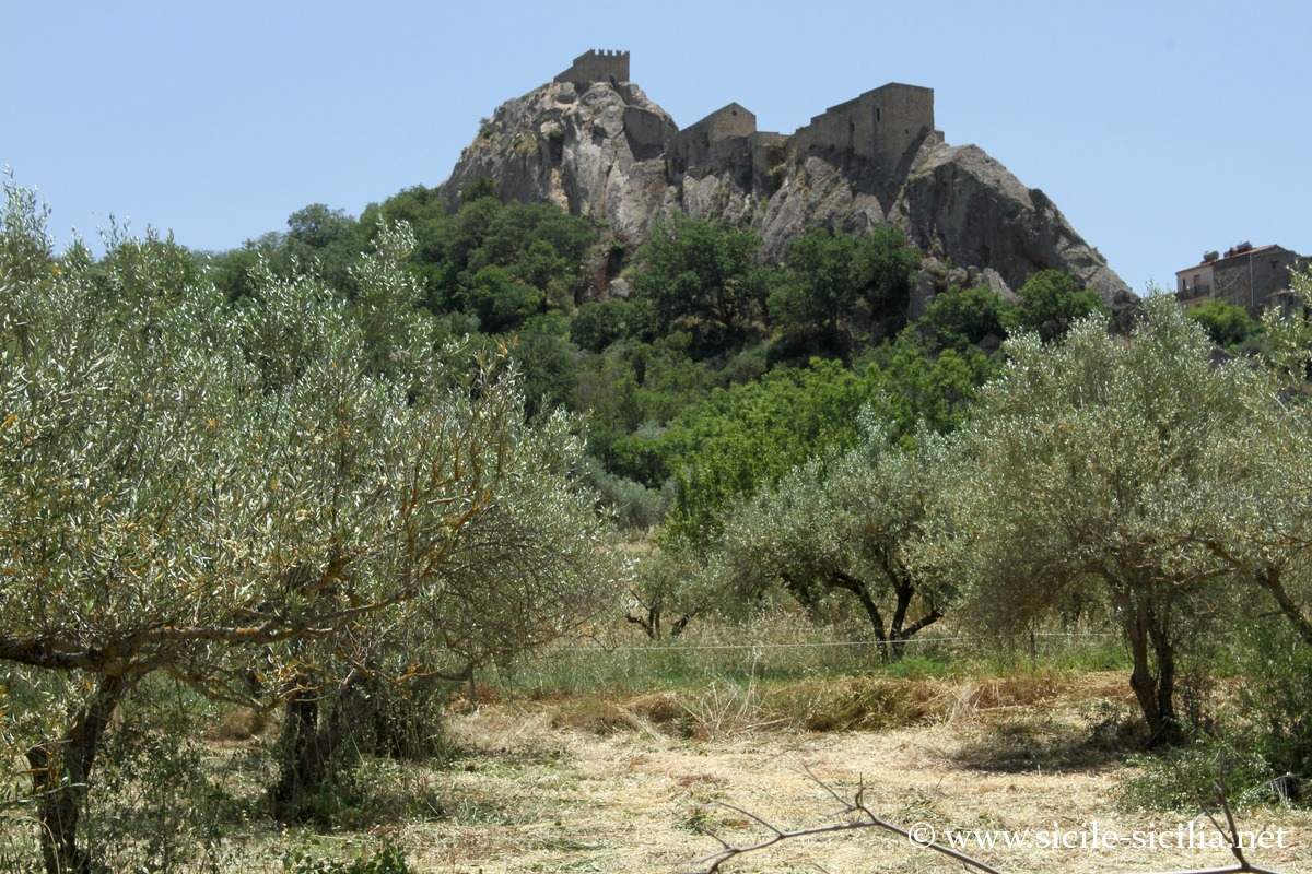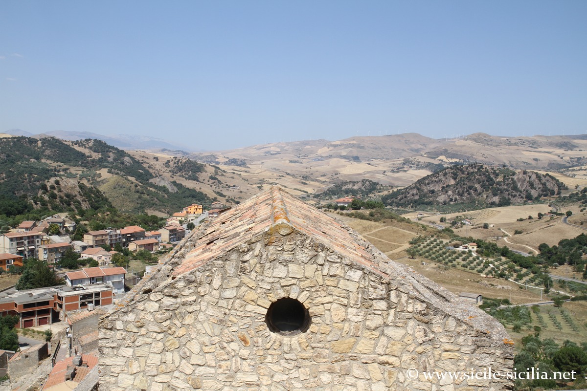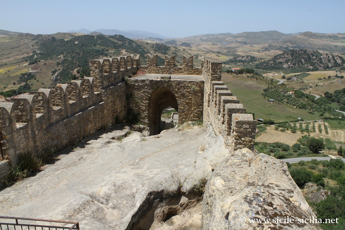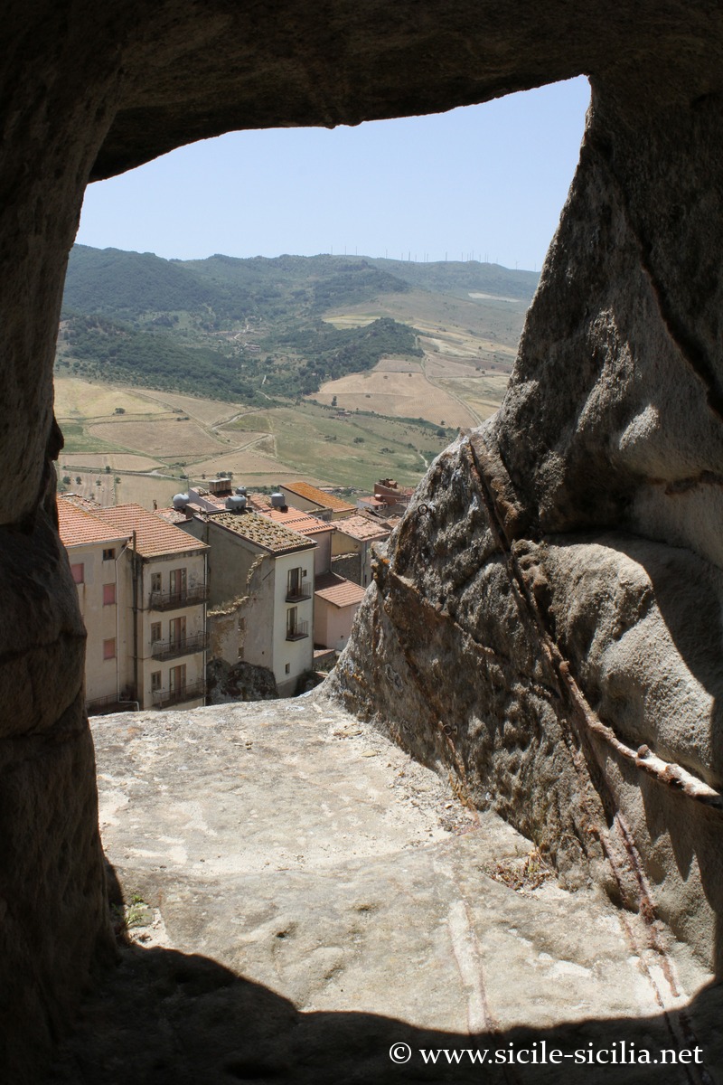 Des escaliers raides taillés dans la roche mènent à la tour, avec sa terrasse protégée de créneaux médiévaux, de laquelle on profite de belles vues sur les environs, des chaînes des Nébrodes et des Madonies.