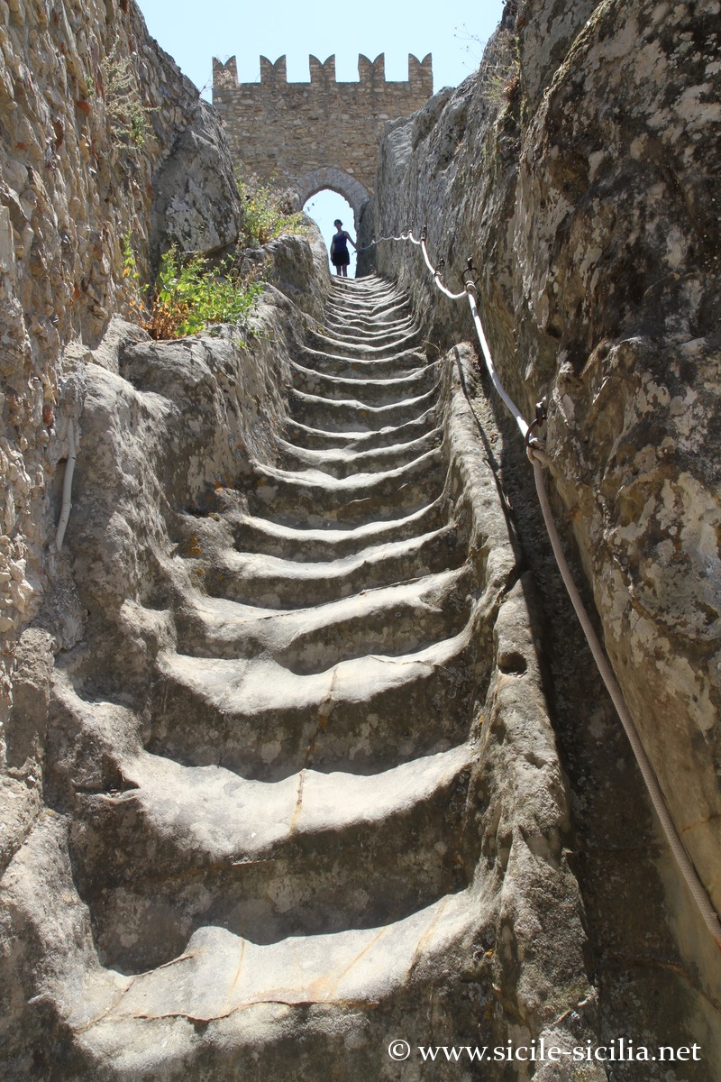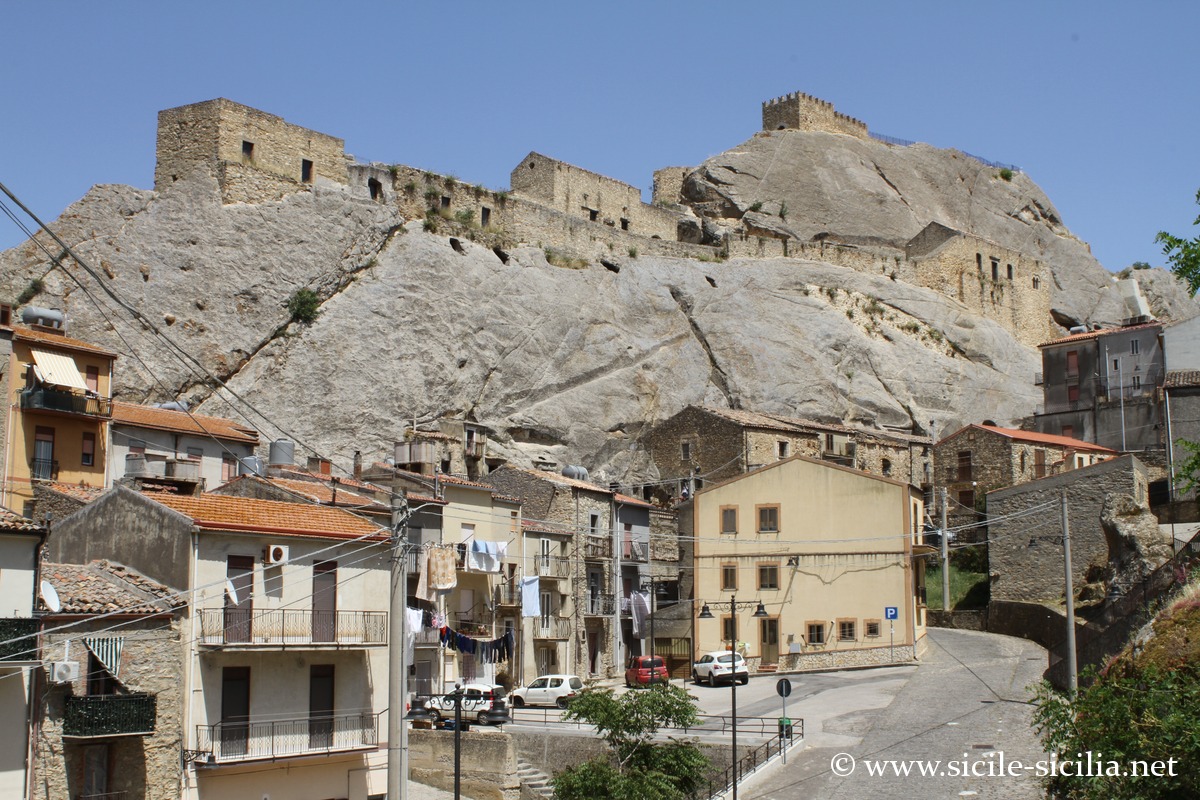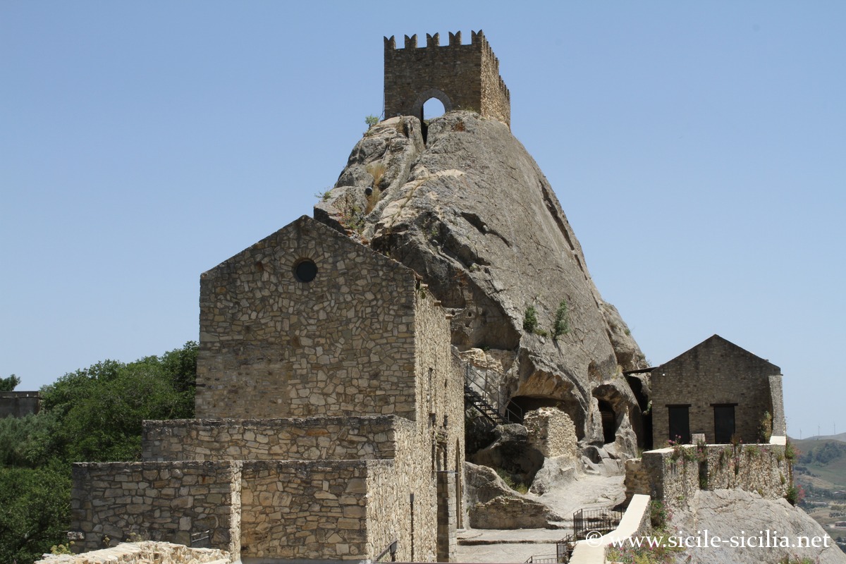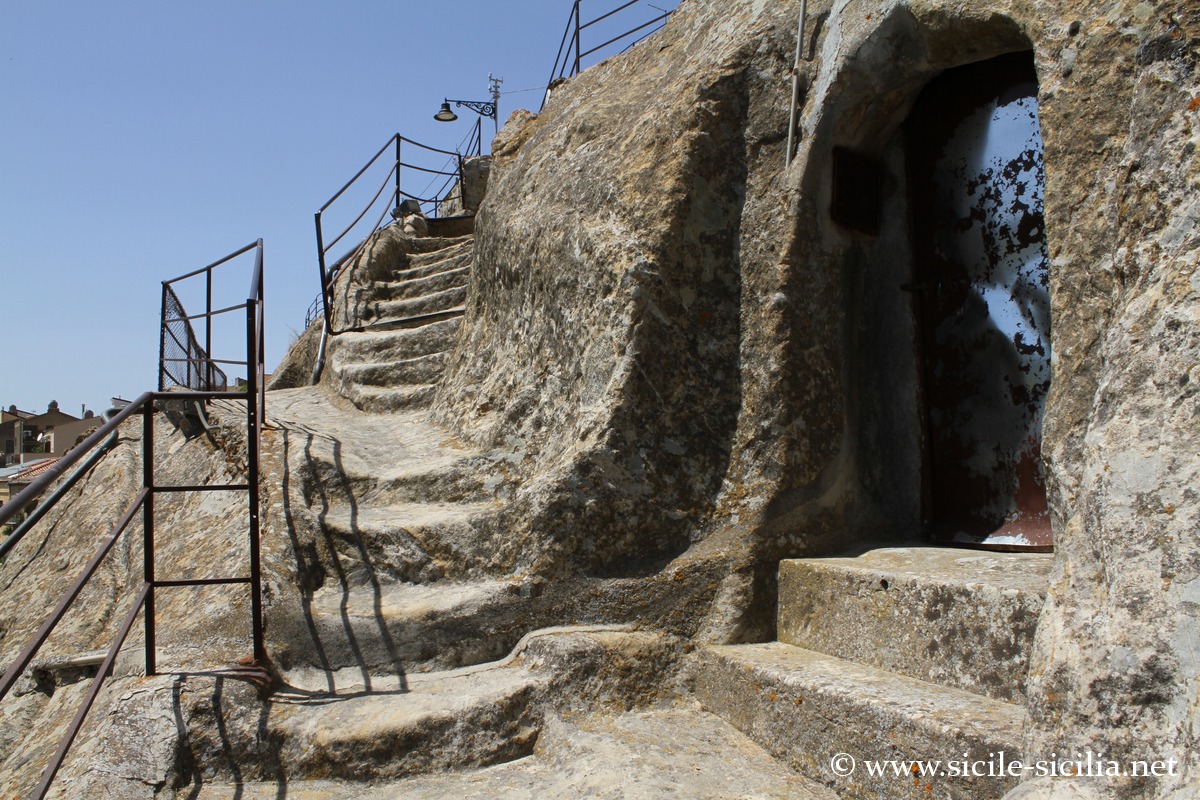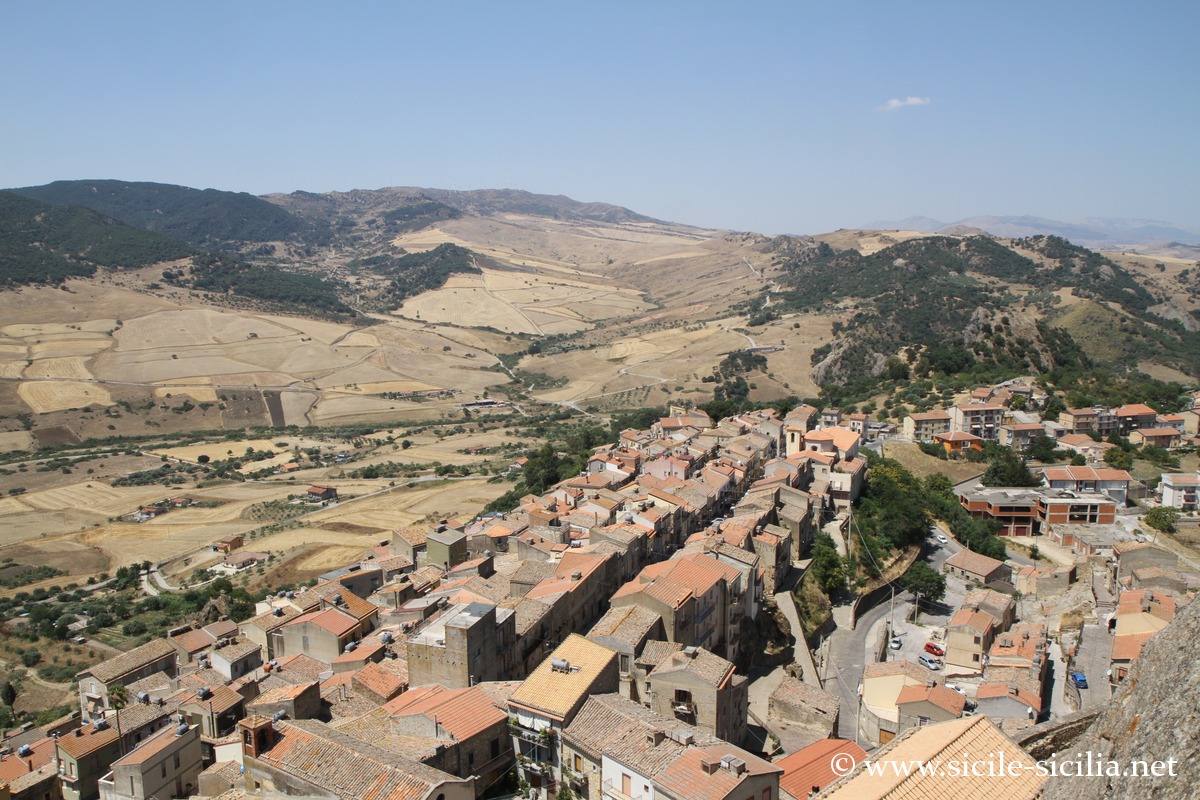 Des escaliers raides taillés dans la roche mènent à la tour, avec sa terrasse protégée de créneaux médiévaux, de laquelle on profite de belles vues sur les environs, des chaînes des Nébrodes et des Madonies.