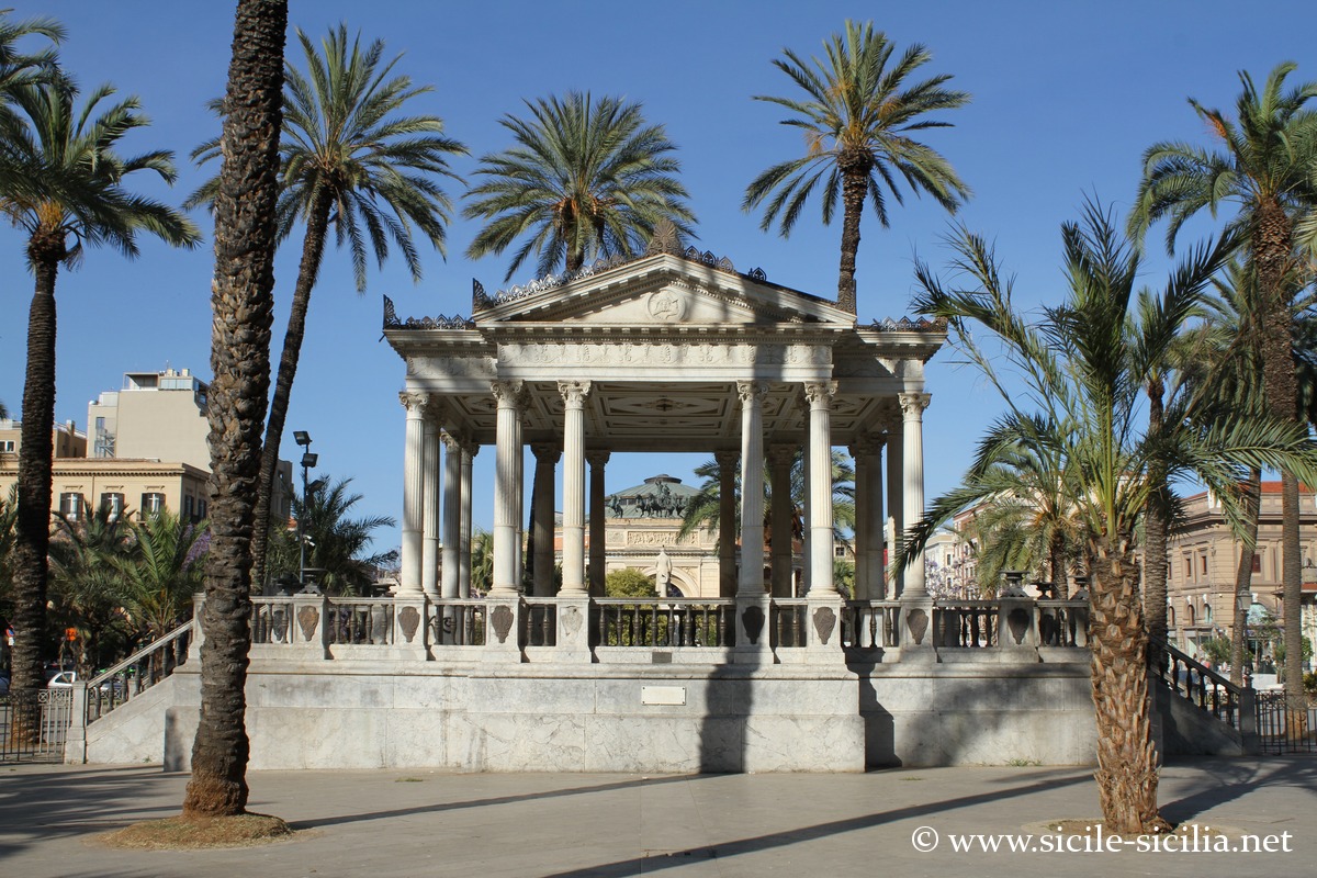 Au centre se trouve le Palchetto della Musica, un petit édicule néoclassique en marbre blanc, élevé en 1875 d’après le projet de Salvatore Valenti pour accueillir les musiciens avec des concerts en plein air.