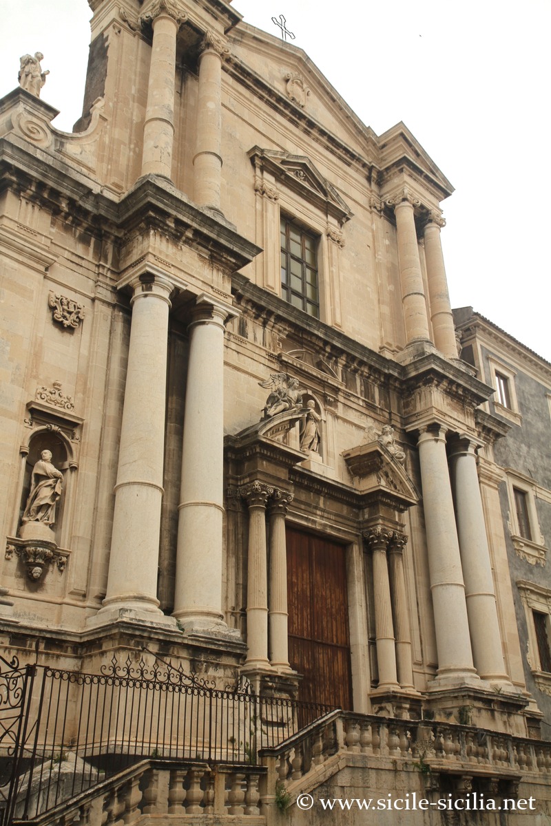 Son élégante façade baroque ne fut achevée qu’en 1854, mêlent des éléments du baroque sicilien tardif avec un portique néoclassique.