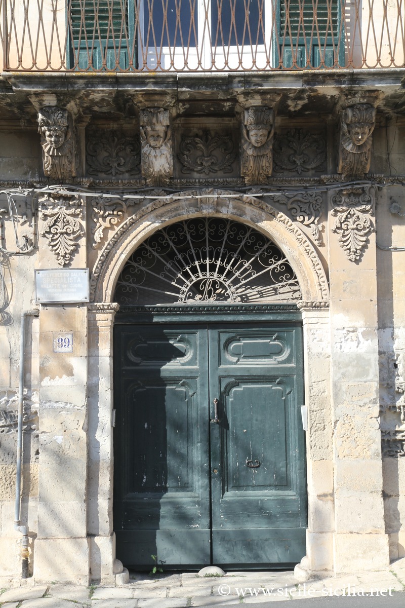 Le Palais Grimaldi est une belle expression du style néo-Renaissance achevé en 1890 et abritant une galerie d’art. La façade présente des fenêtres à frontons et balcons sculptés, caractéristiques du XIXe siècle sicilien. L’intérieur conserve un salon décoré de fresques allégoriques représentant les quatre saisons, réalisées par l’atelier Betti de Florence.