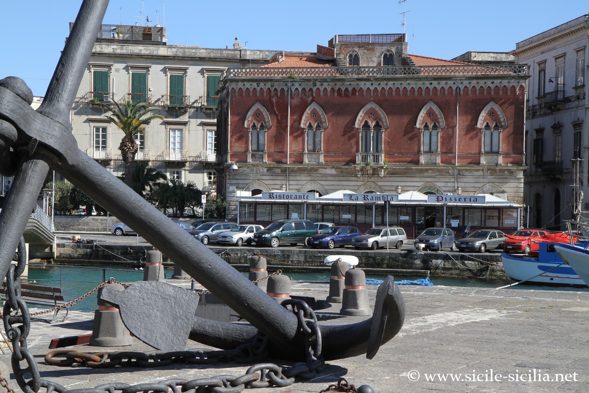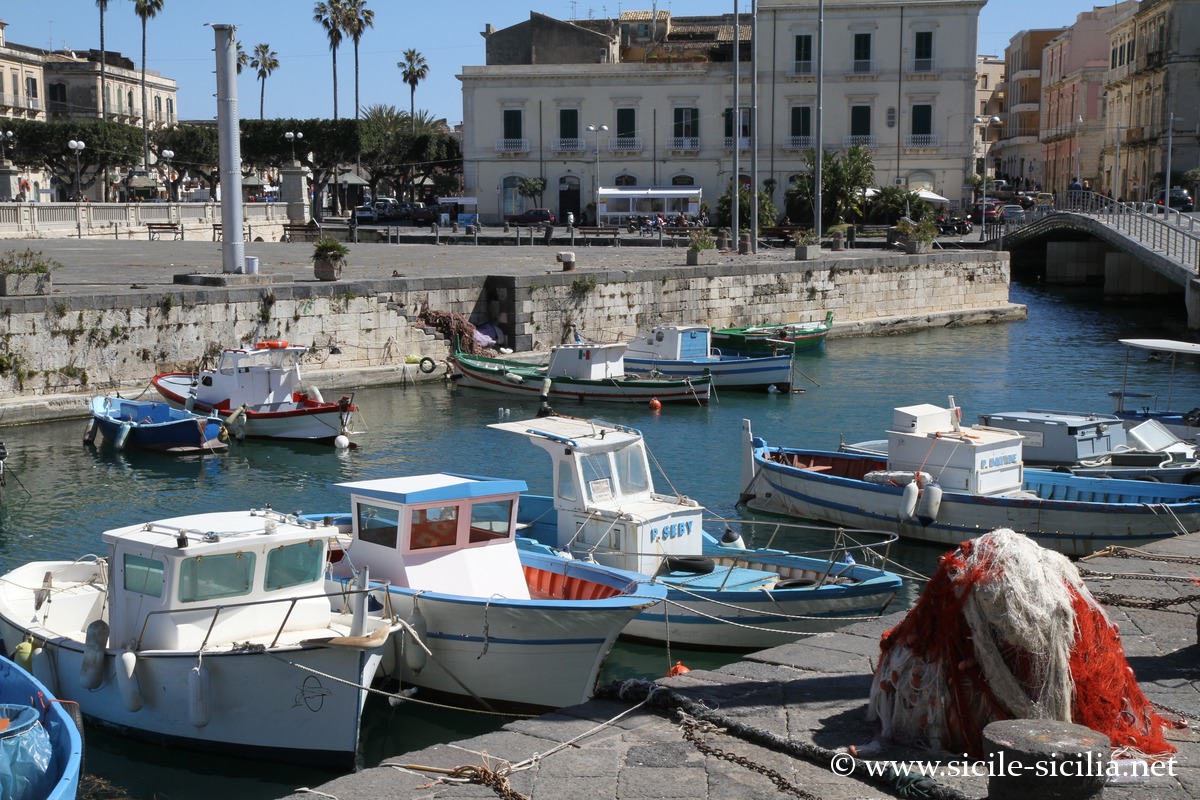 Un petit port (Porto Piccolo) se situe à l’entrée de l’île d’Ortygie, le long de la darse, bordé par des palais de style vénitiens. C’est près du port et du Temple d’Apollon que se tient le marché traditionnel, tous les matins sauf le dimanche.